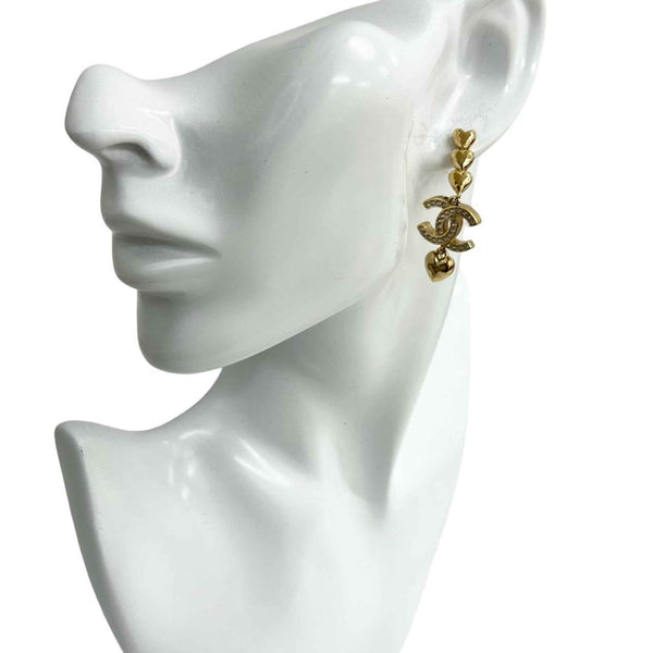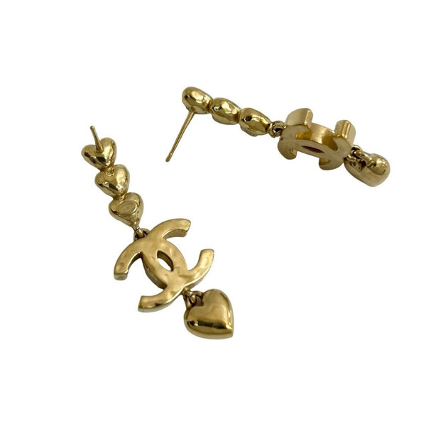 CHANEL Coco Mark Heart Motif Earrings, Gold, 41726