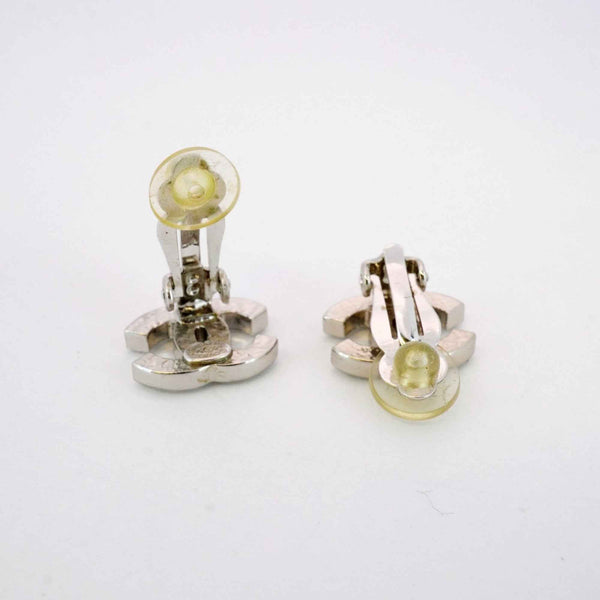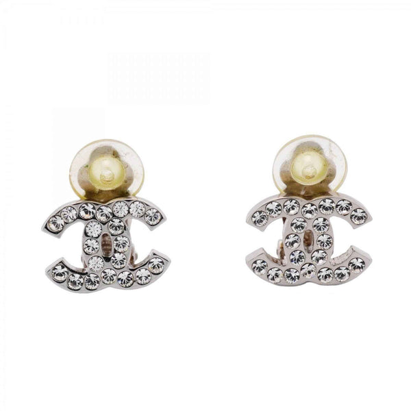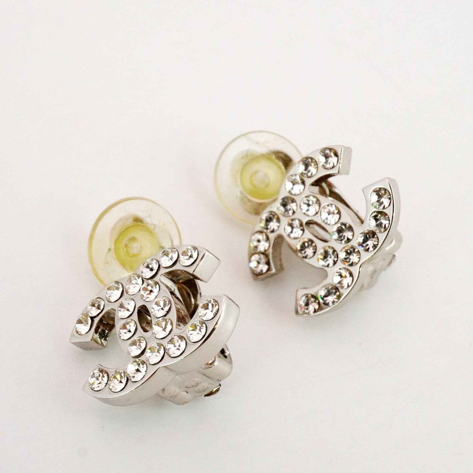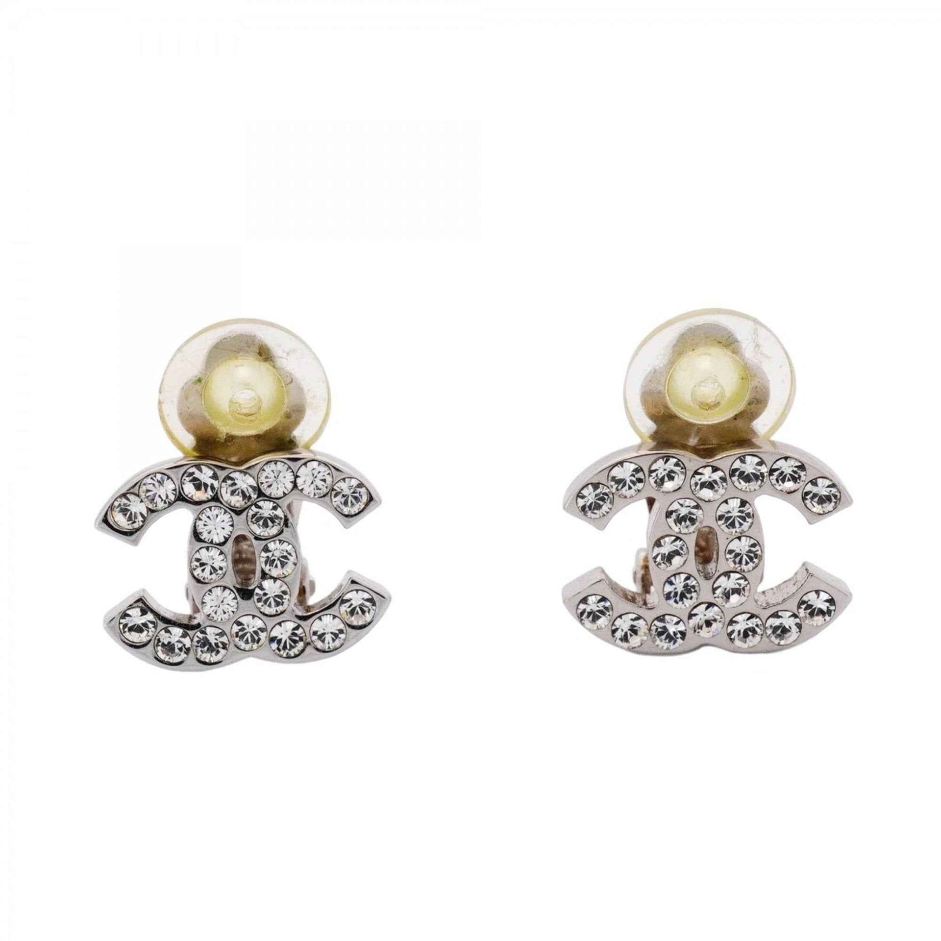 Chanel Coco Mark Metal Rhinestone Silver Earrings for Women