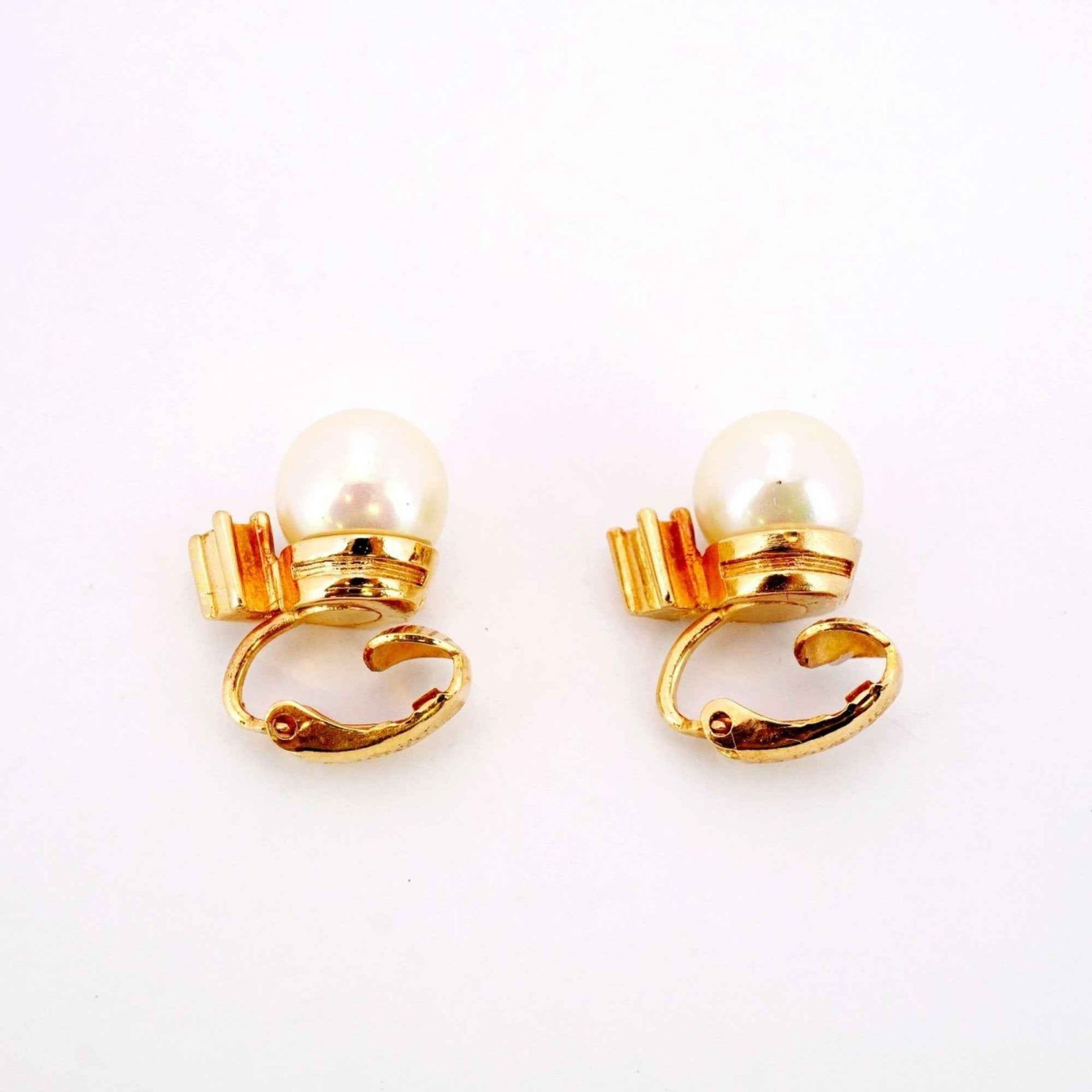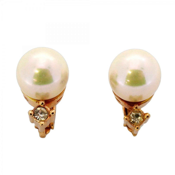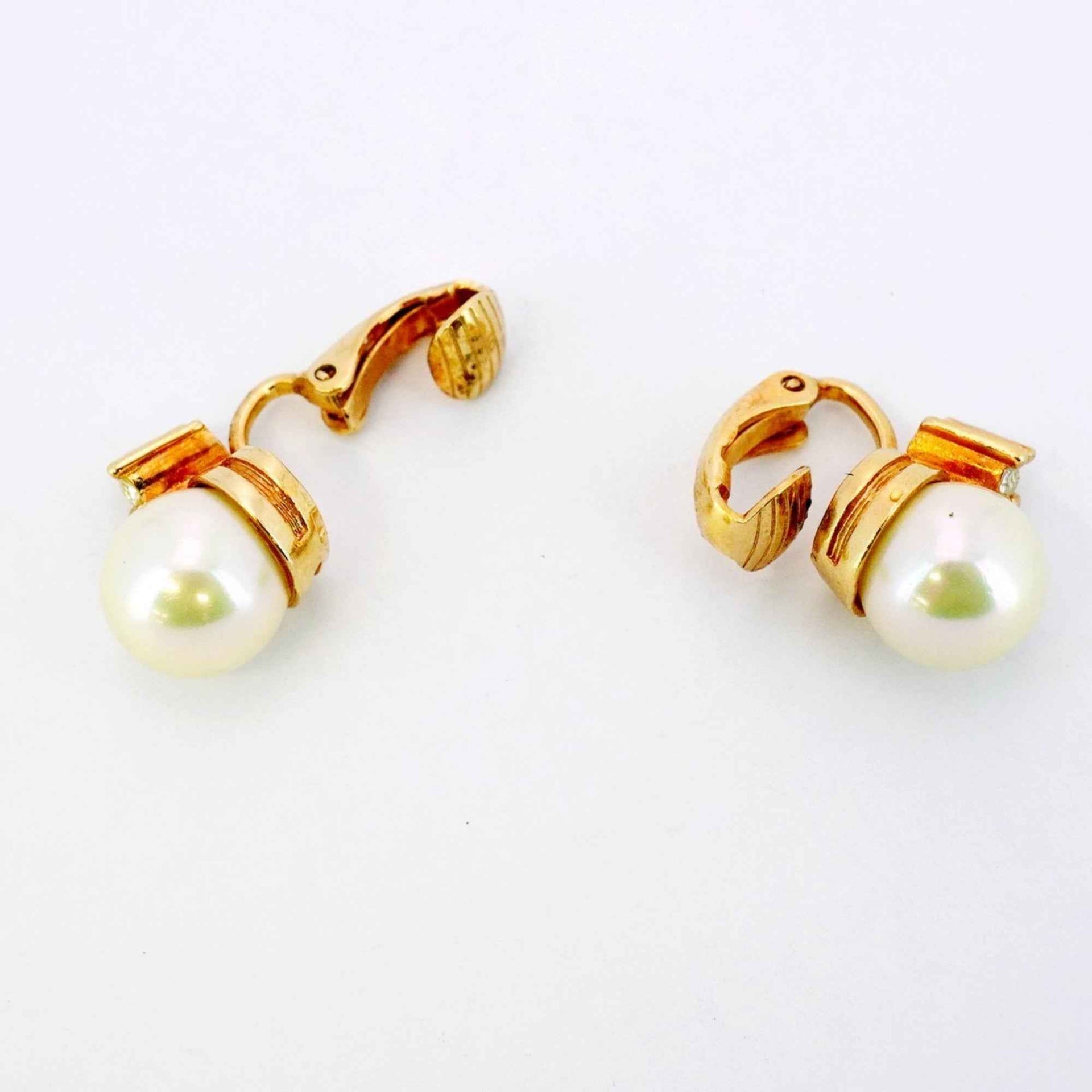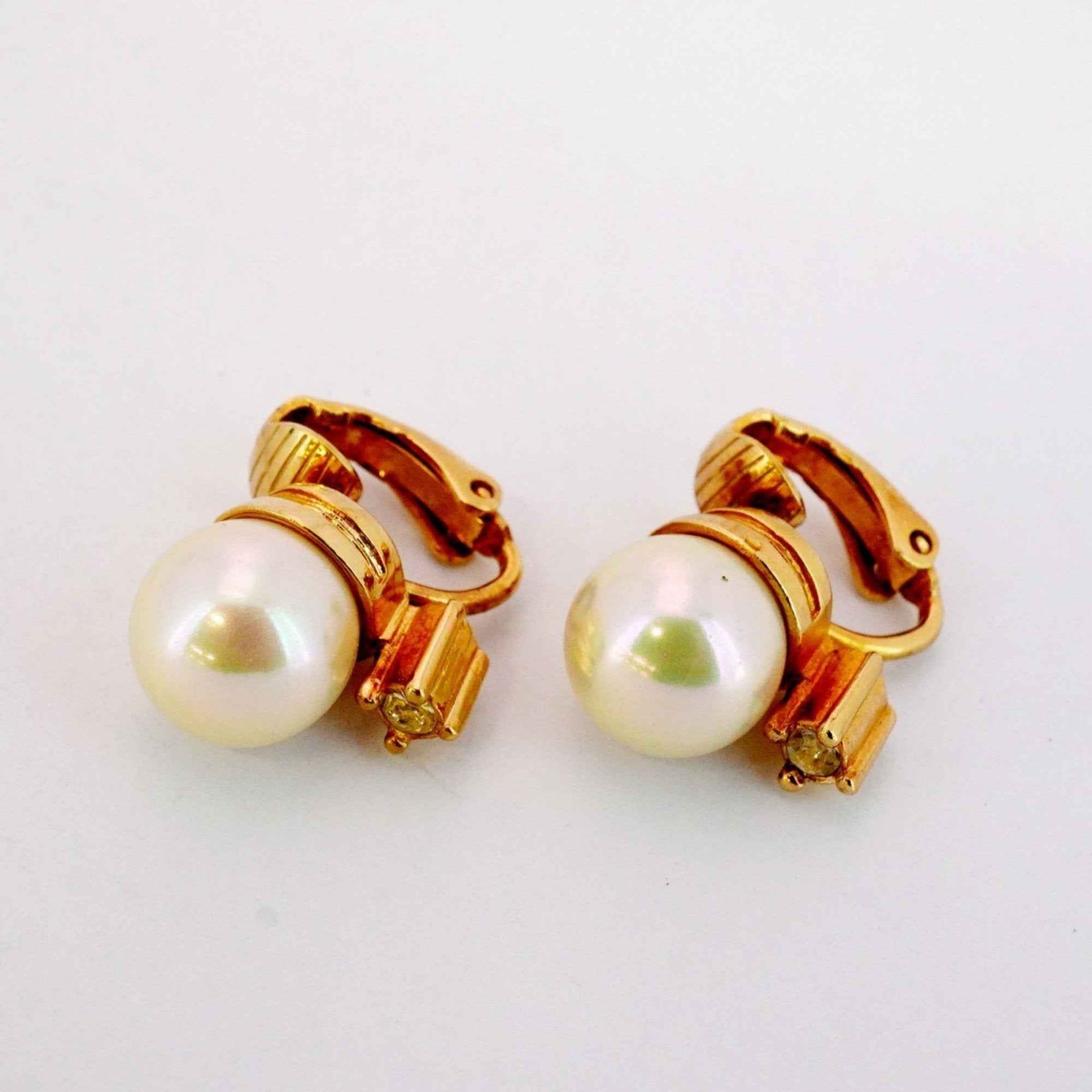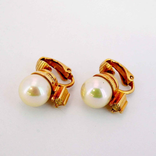 Christian Dior Earrings, GP Plated, Faux Pearls, Rhinestones, Gold, Women\'s