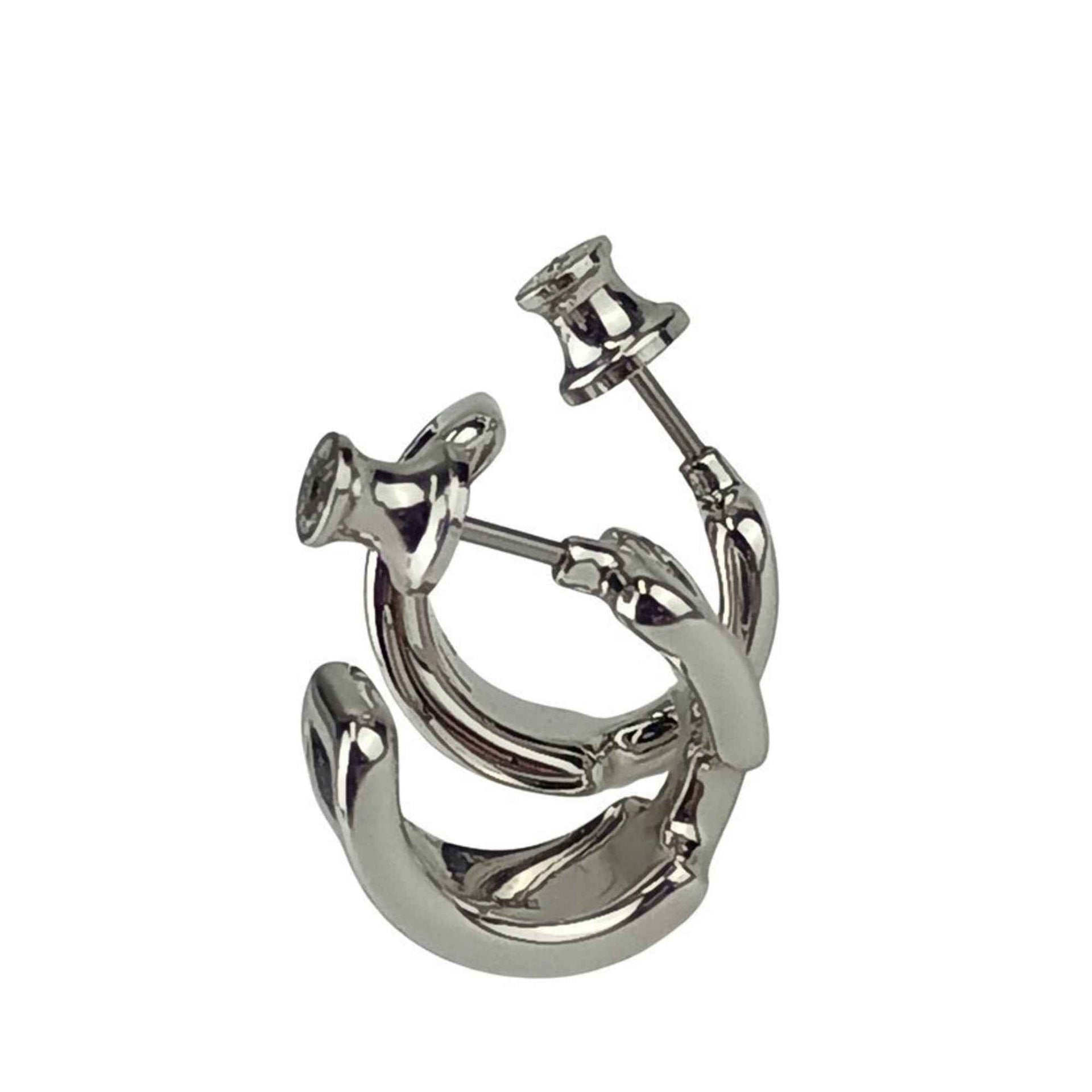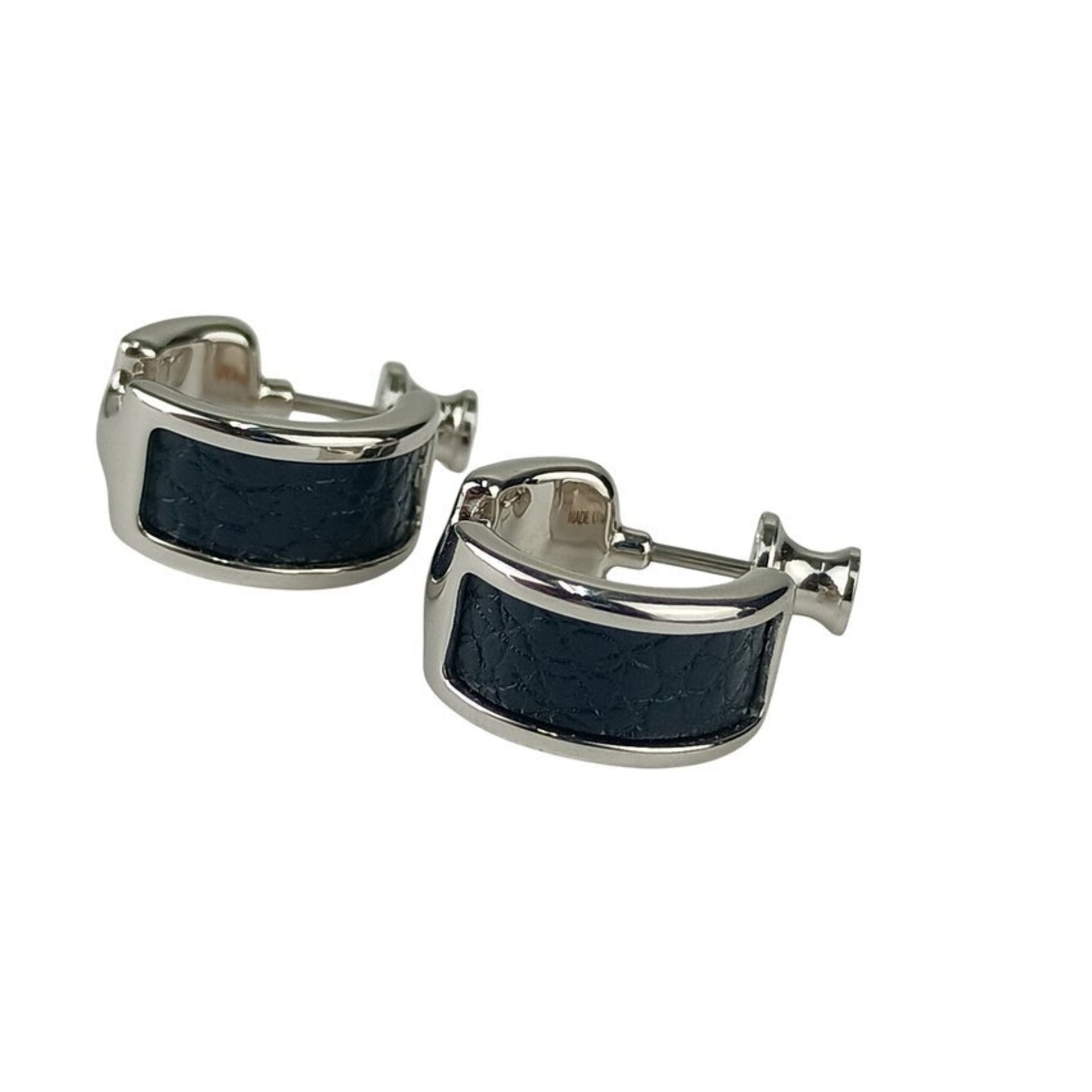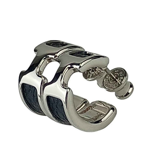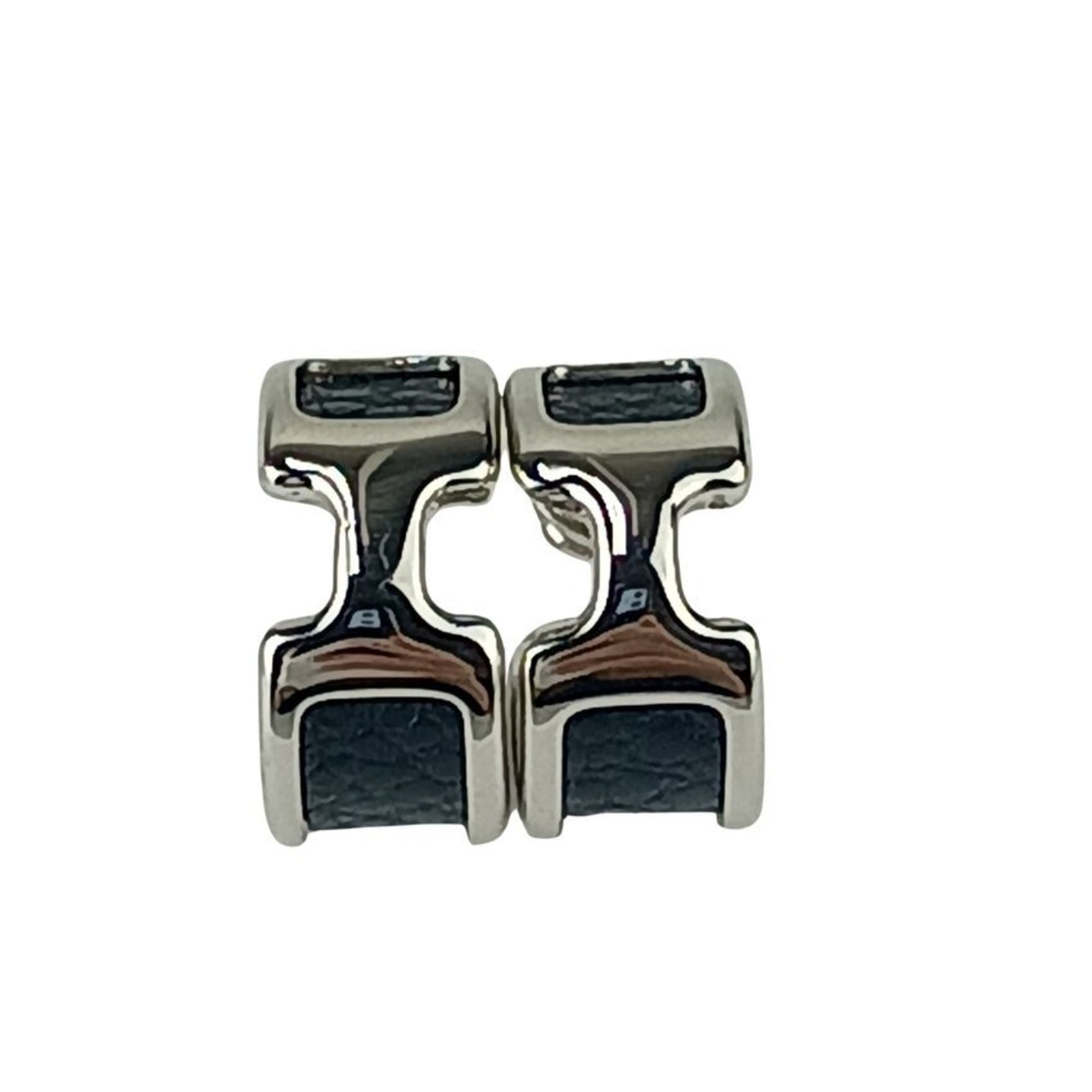 HERMES Olympe PM Earrings - Silver, Black Metal, Leather, Women\'s