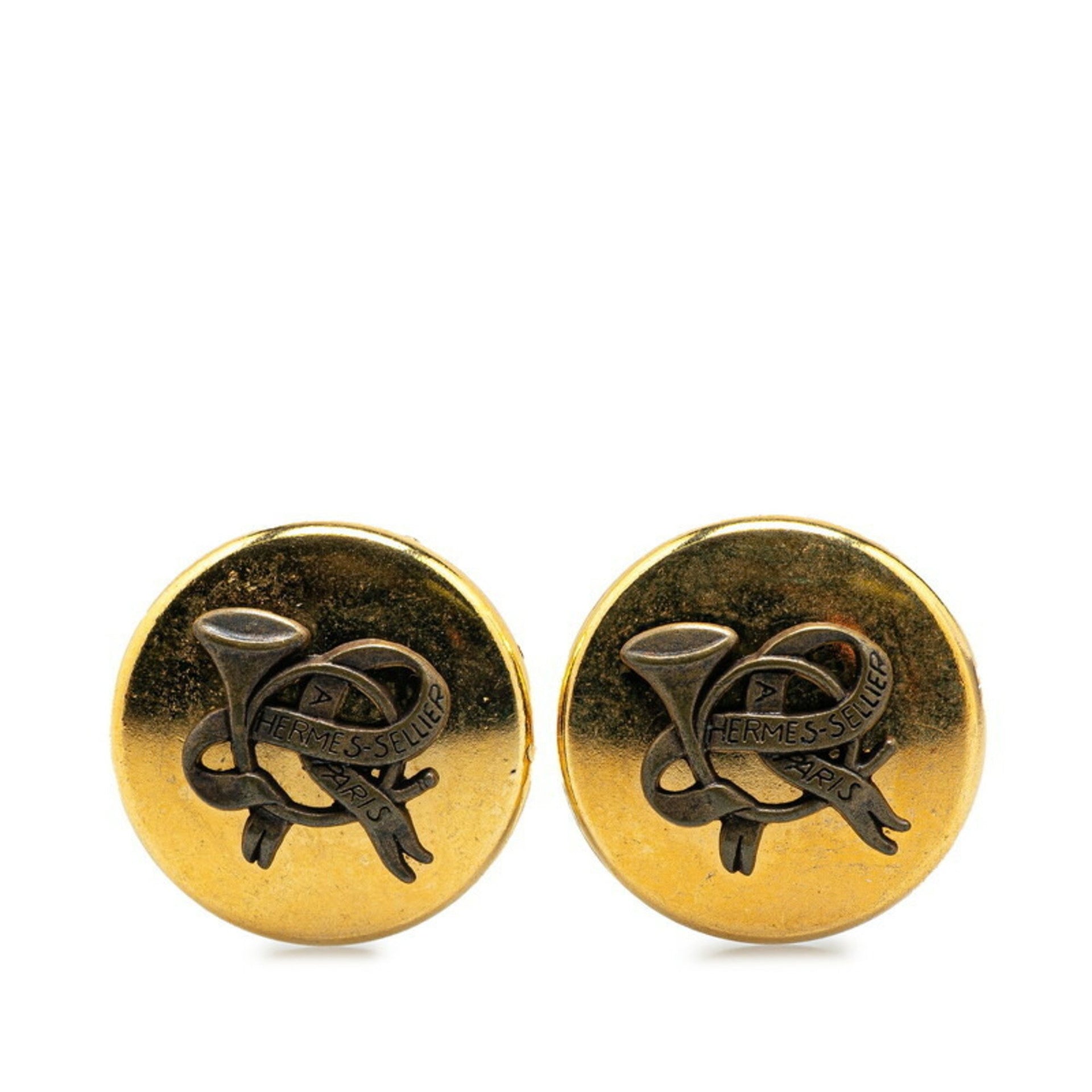 Hermes Trumpet Ribbon Motif Earrings Gold Plated Women\'s HERMES