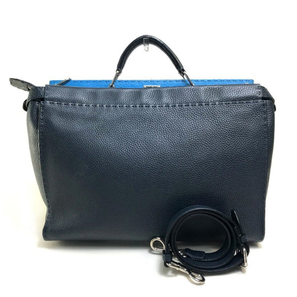 FENDI 7VA388 Selleria Peekaboo 2-Way Shoulder Bag, Business Leather, Men\'s, Navy x Blue