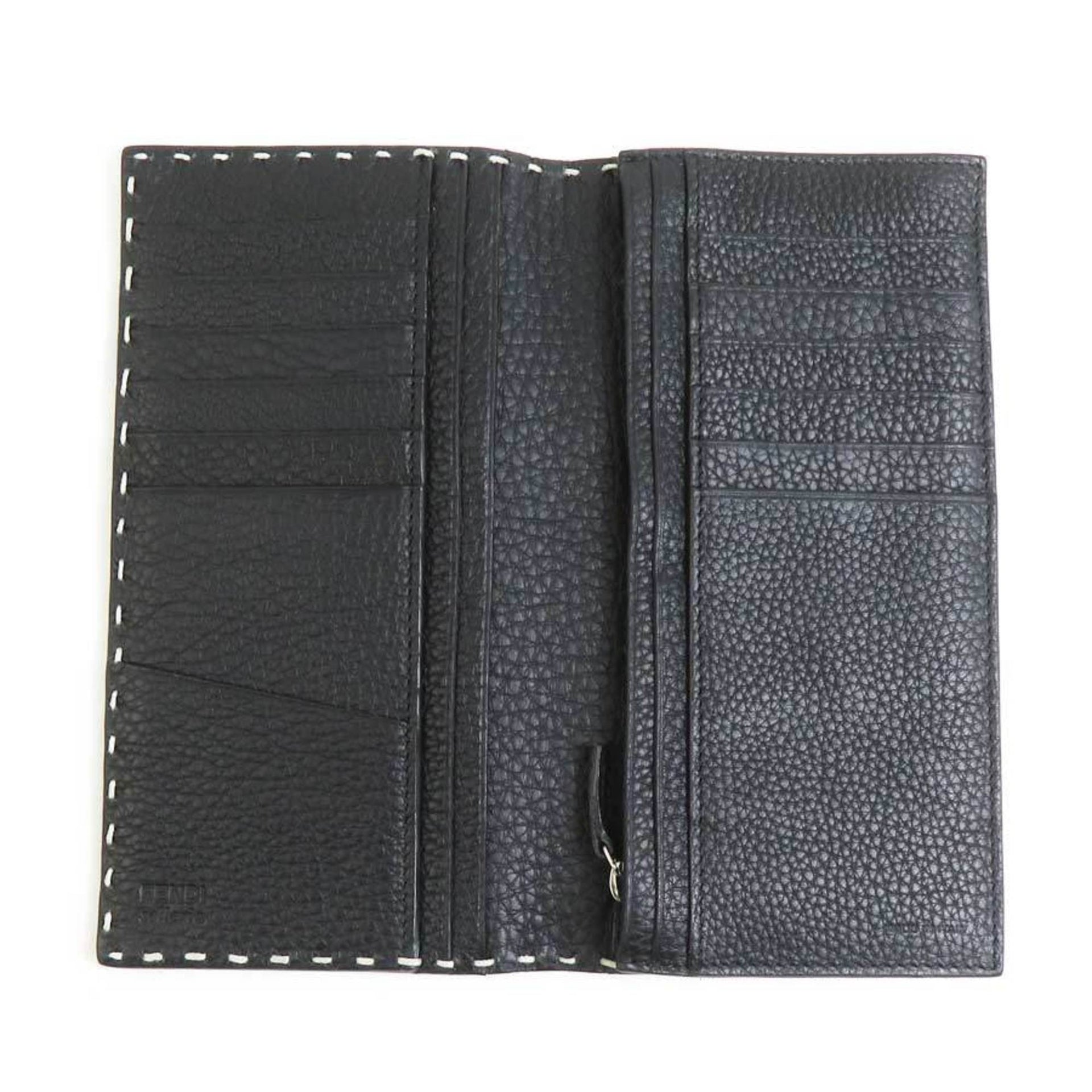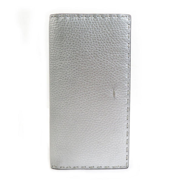 Fendi FENDI Bi-fold Long Wallet, Leather, Silver, Men\'s/Women\'s, 7M0186-74P, h31688a