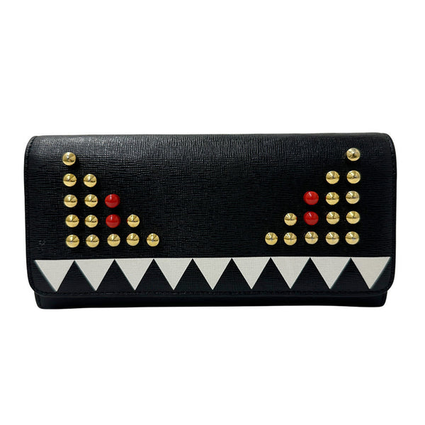 Fendi FENDI wallet for men and women, branded long wallet, leather, monster black, unique design