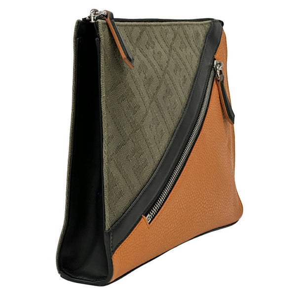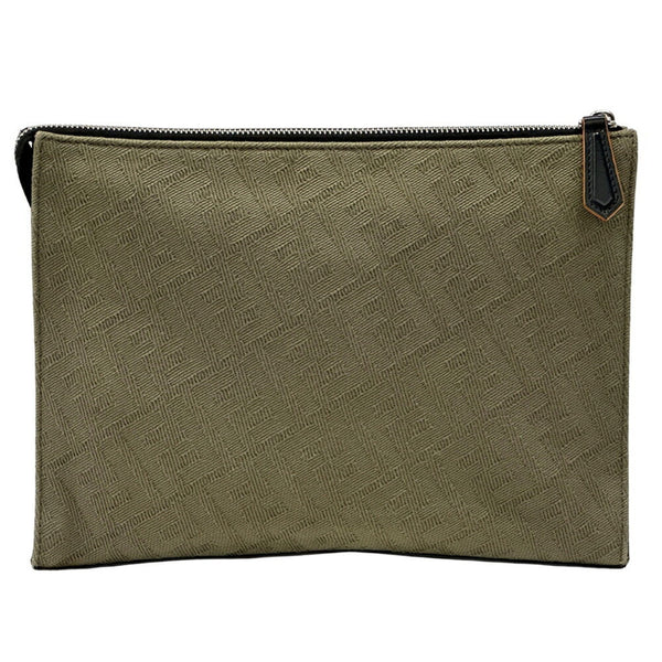 Fendi Men\'s Zucca Clutch Bag/Second Handbag in Canvas and Leather with Khaki Orange Two-Tone Design