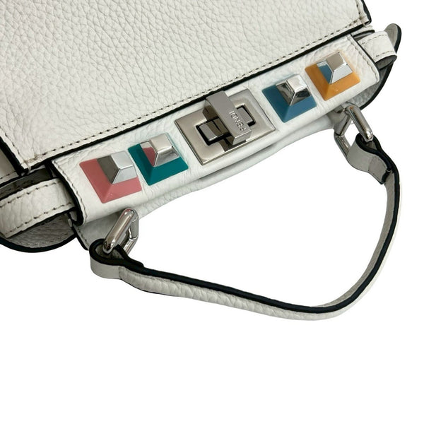 FENDI Peekaboo Mini Leather 2-Way Handbag/Shoulder Bag White/Multicolor 2145b