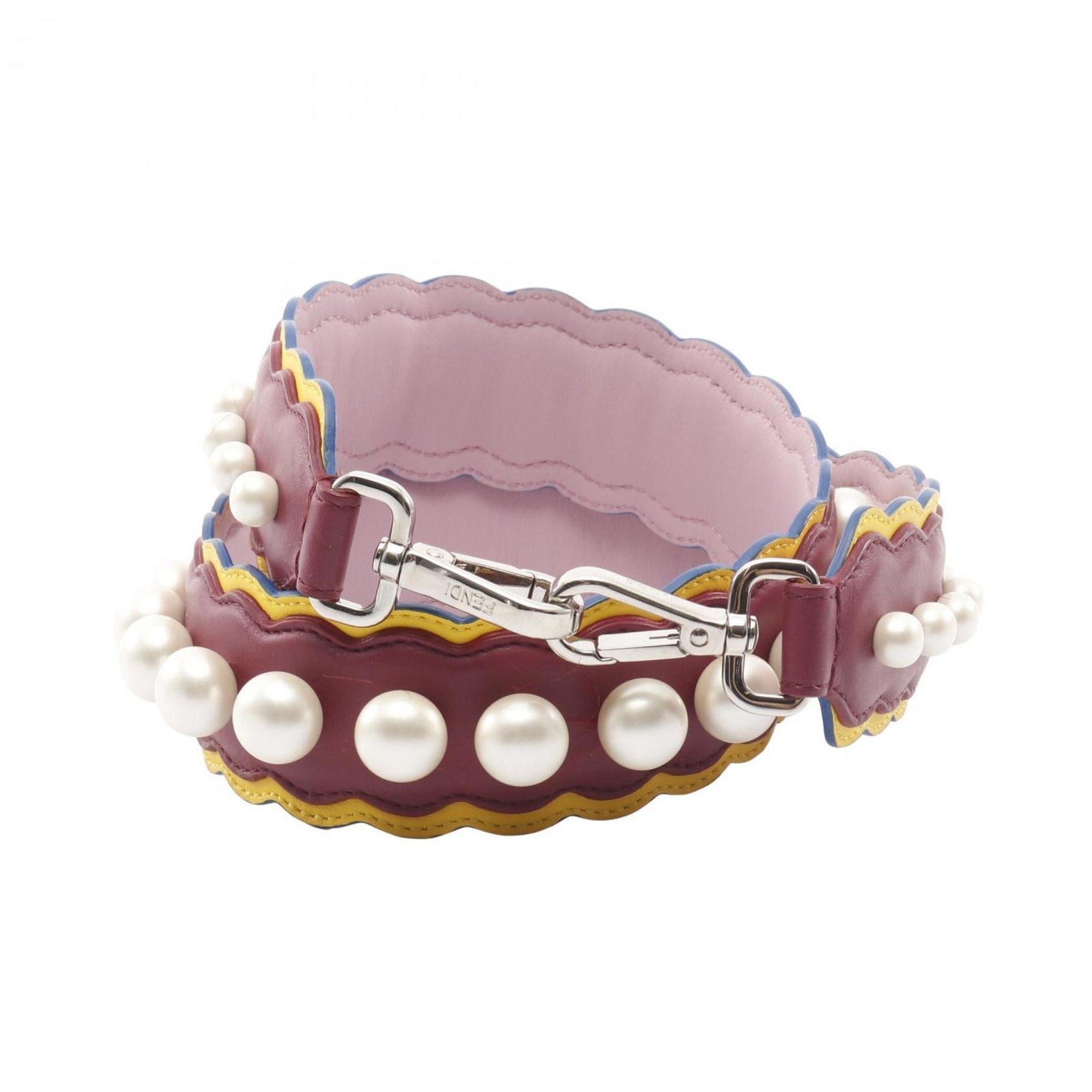 FENDI Strap You Shoulder Accessory, Leather with Faux Pearl, Women\'s, Bordeaux, Yellow, and White