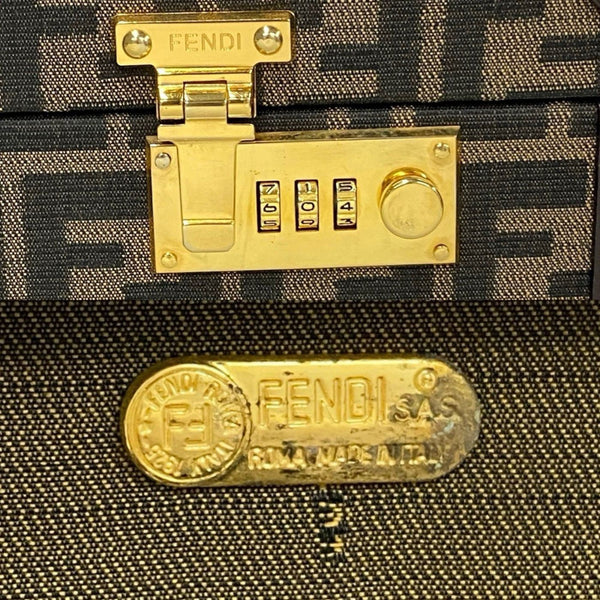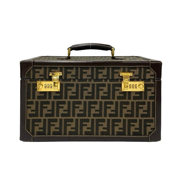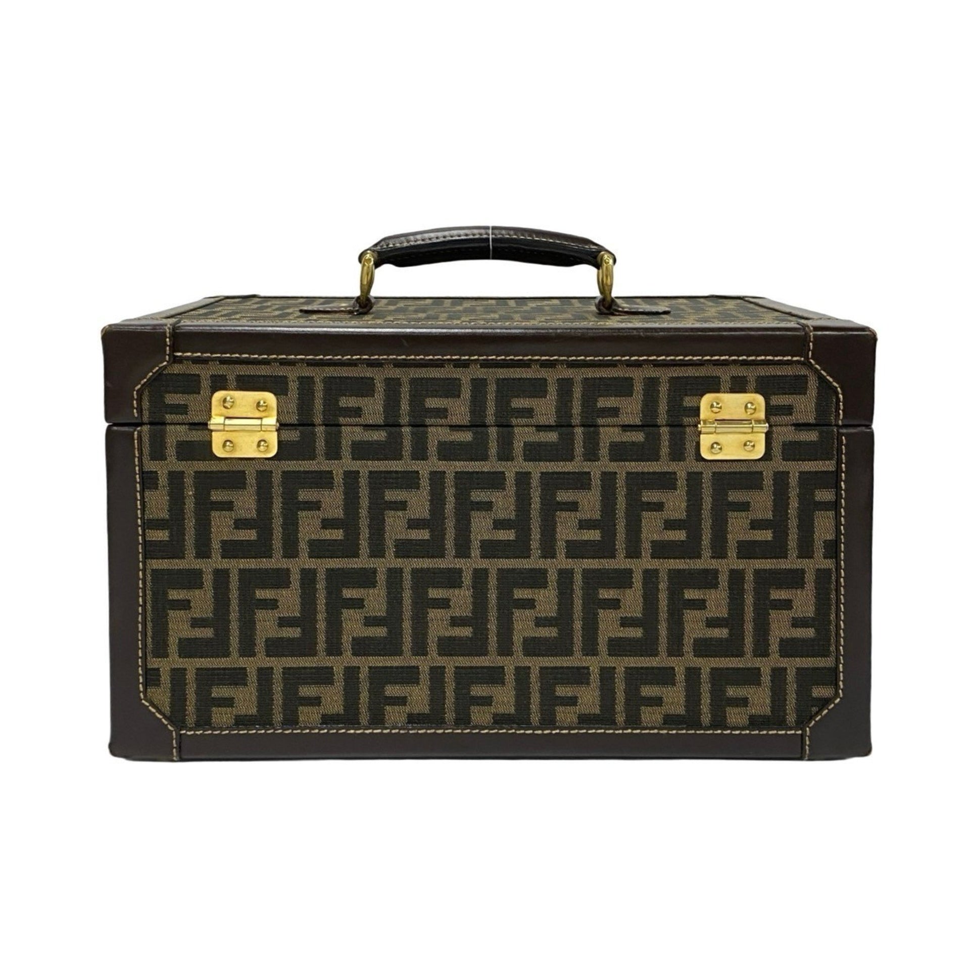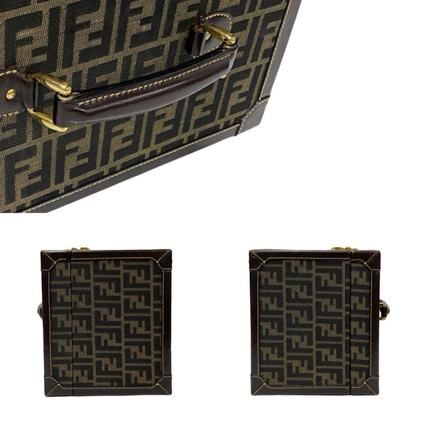 FENDI Zucca FF pattern canvas and leather handbag, vanity bag, makeup box in brown (42713)