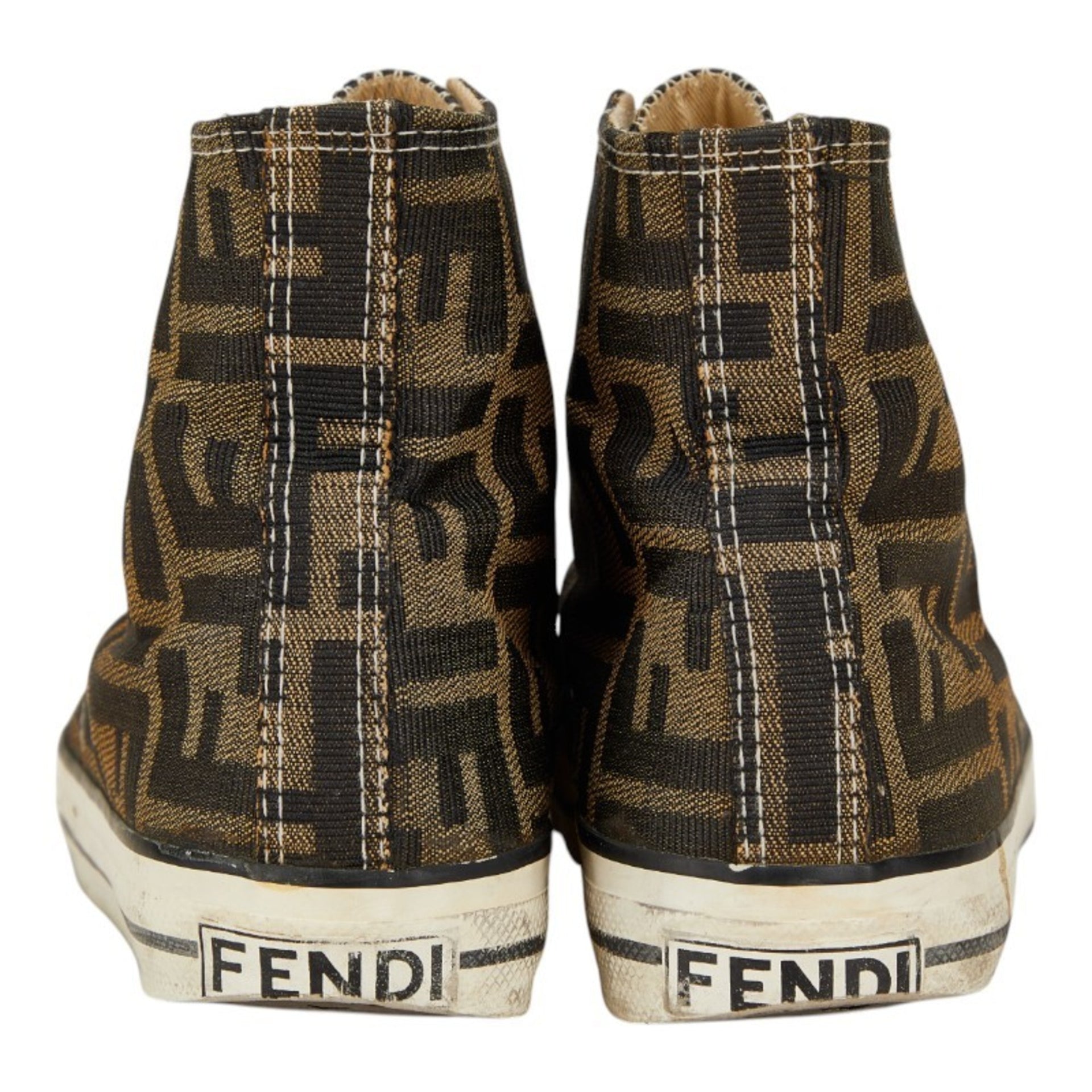 Fendi Zucca High-Top Sneakers, Size 34, Beige/Brown Canvas, Women\'s, FENDI
