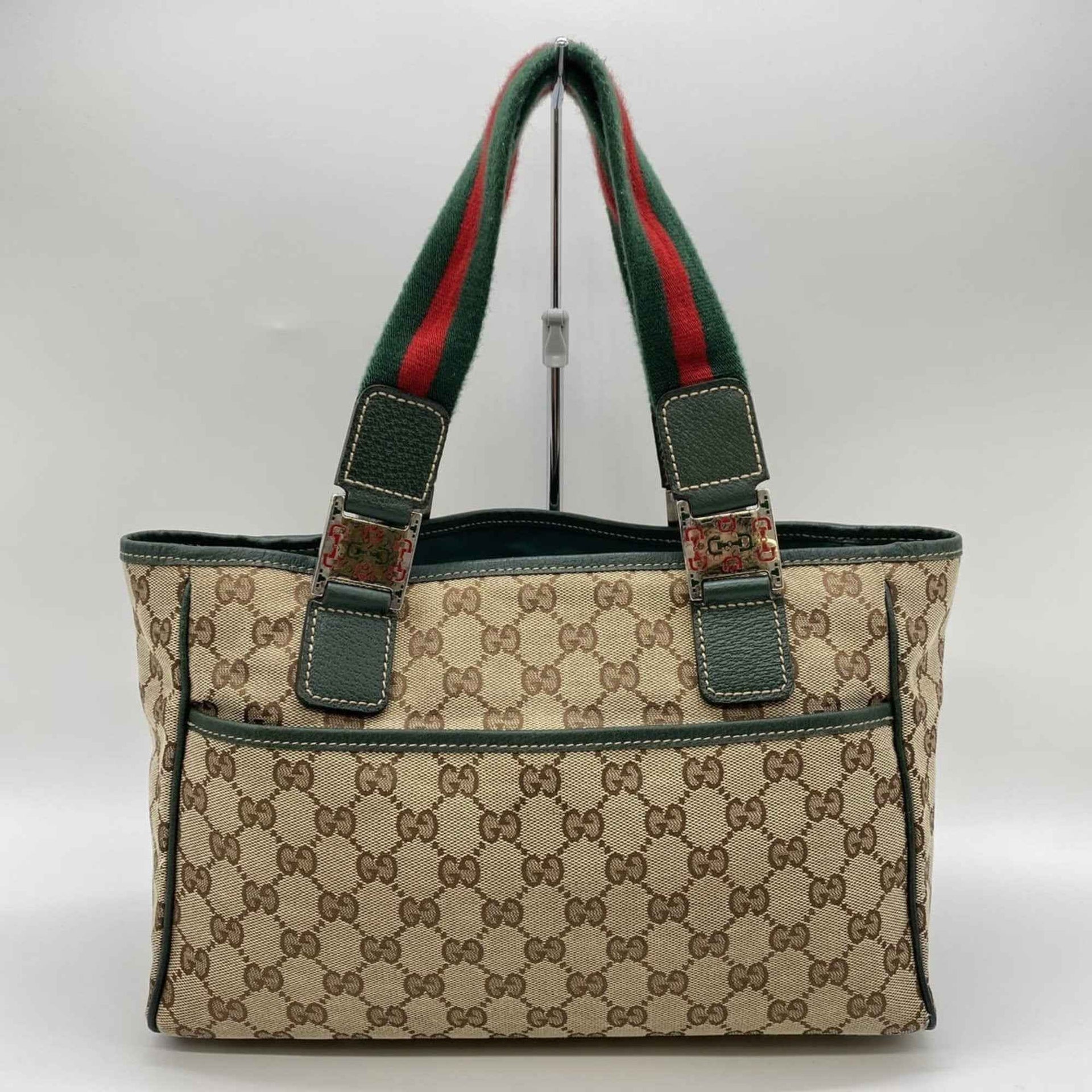 GUCCI 145810 Sherry Line Tote Bag, GG Canvas and Leather, Beige, for Men Women
