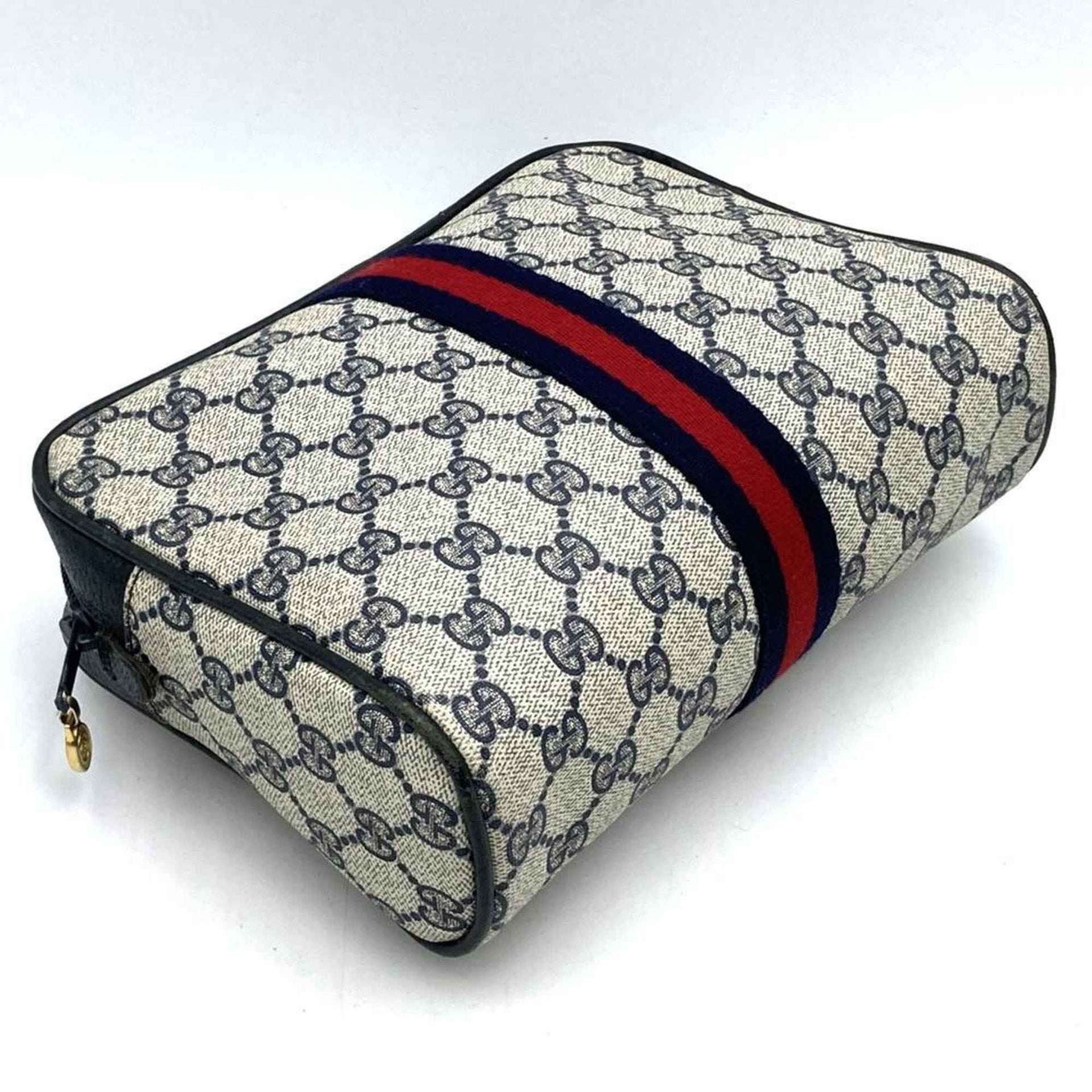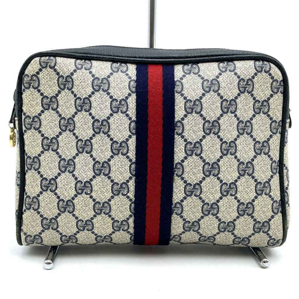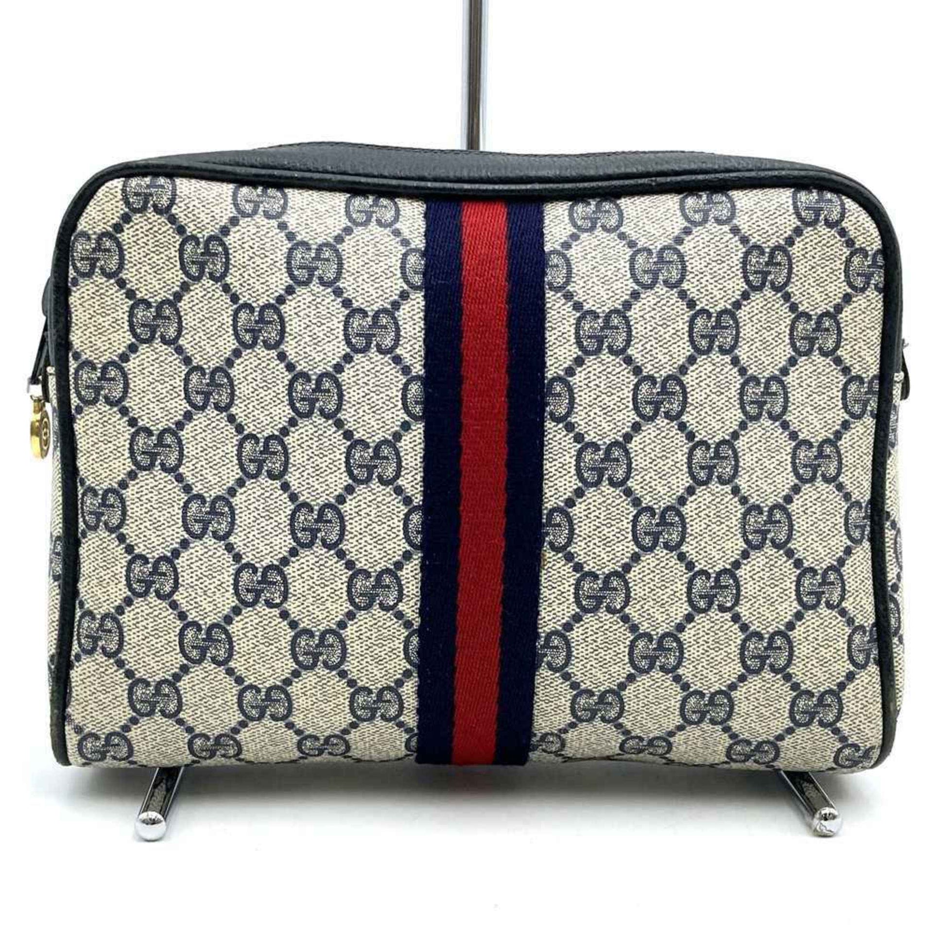 GUCCI 27 004 998 Clutch Bag, Second Pouch, GG Supreme, Old Gucci, Navy, Women\'s and Men\'s