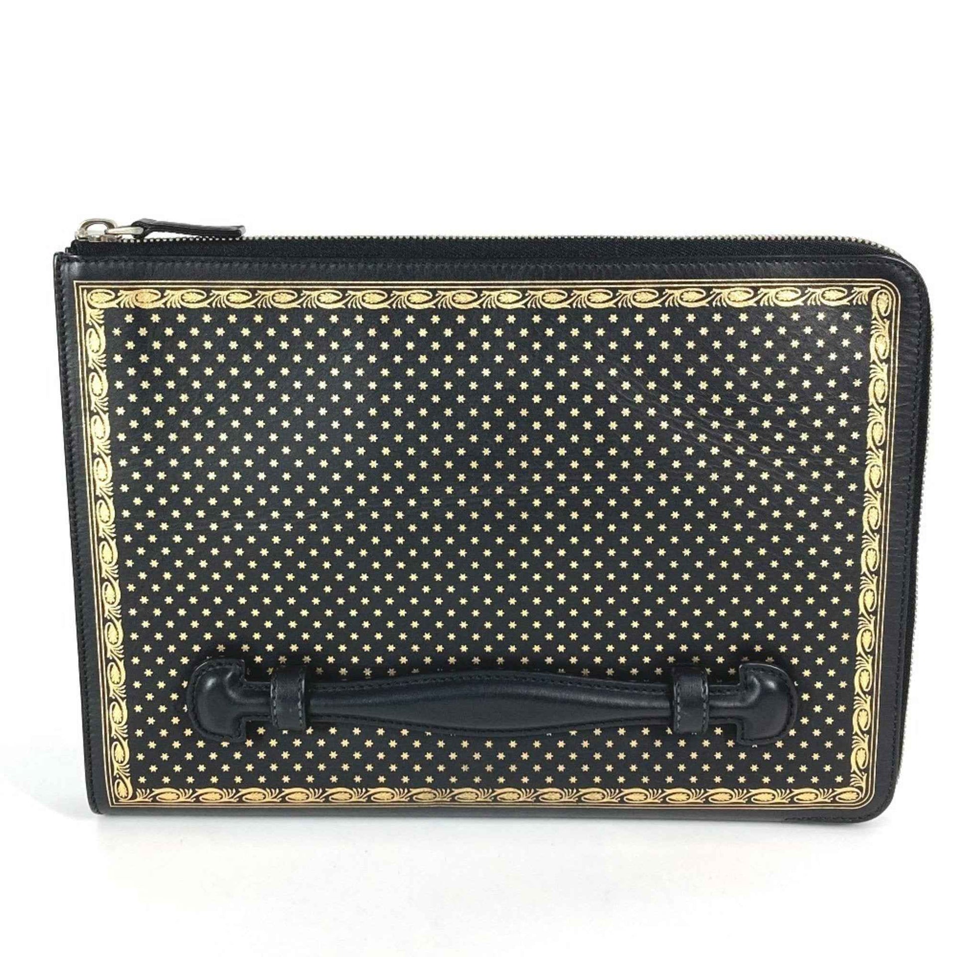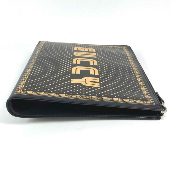 GUCCI 523441 Sega Collaboration GUCCY Logo Pouch with Handle, Second Bag, Clutch Leather, Unisex, Black