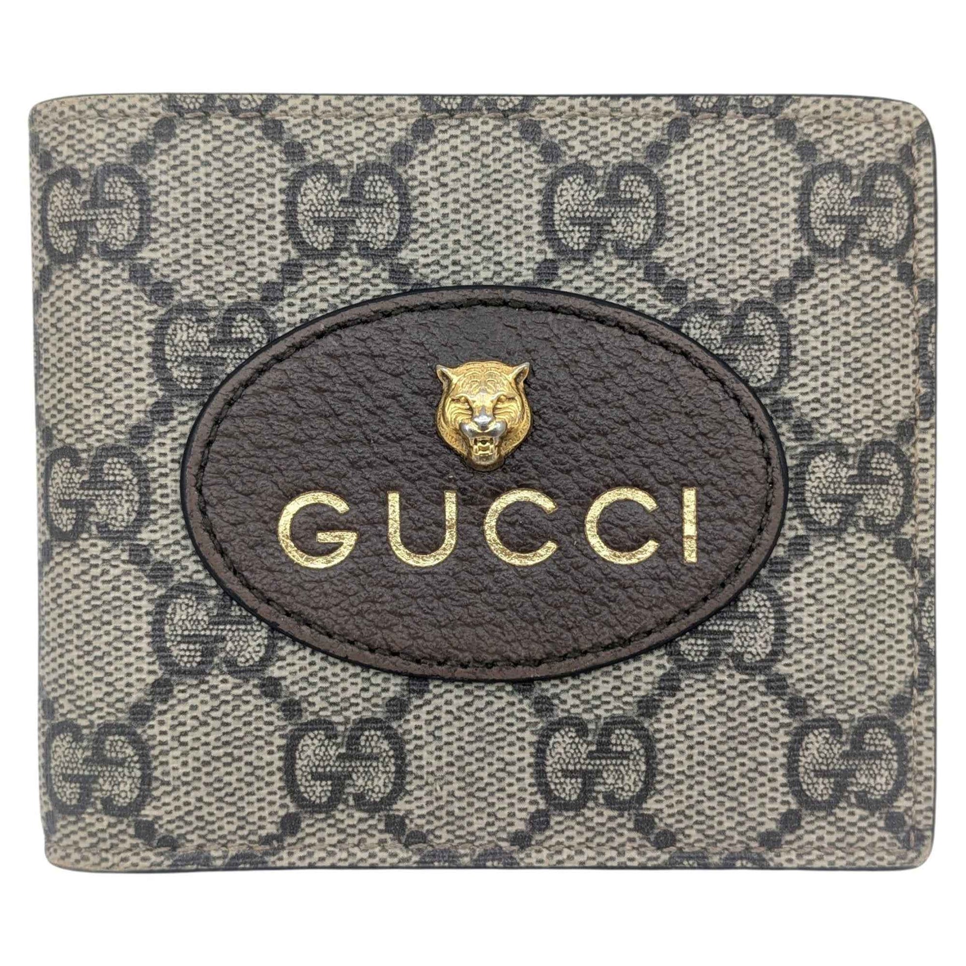 GUCCI Bifold Wallet GG Supreme Tiger Pattern in Beige, Brown, and Yellow (473954) - Business Card Case for Men Women