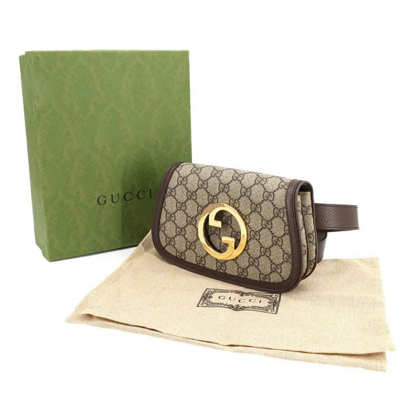 Gucci Blondie GG Supreme Belt Bag, Waist Pouch, Beige/Brown Leather, Gold Hardware, 703807