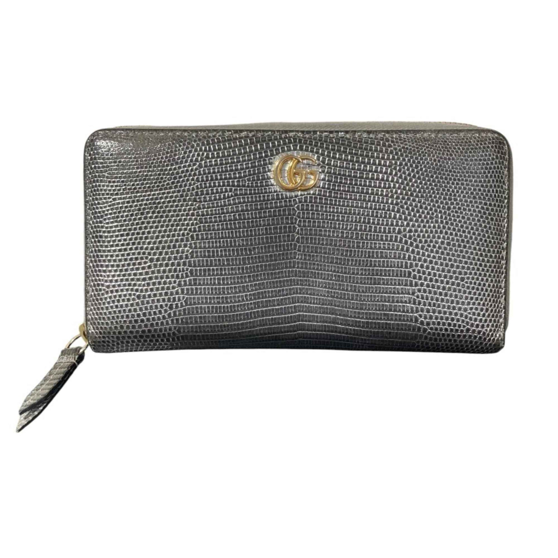 GUCCI Embossed Leather GG Marmont Long Wallet 456117 Silver Women\'s