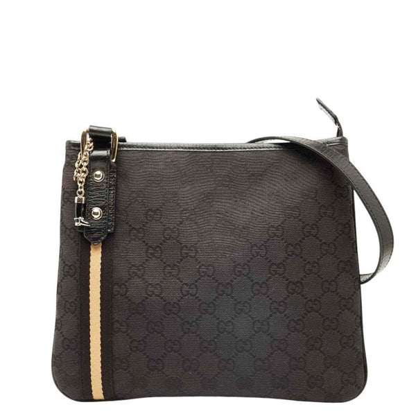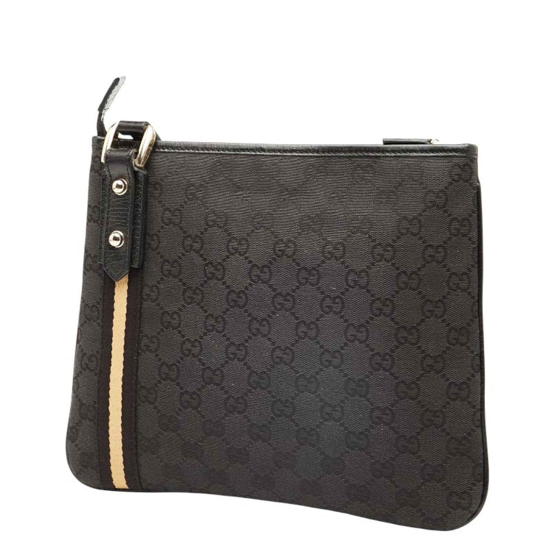 Gucci GG Canvas Crossbody Shoulder Bag 144388 Black Leather Women\'s GUCCI