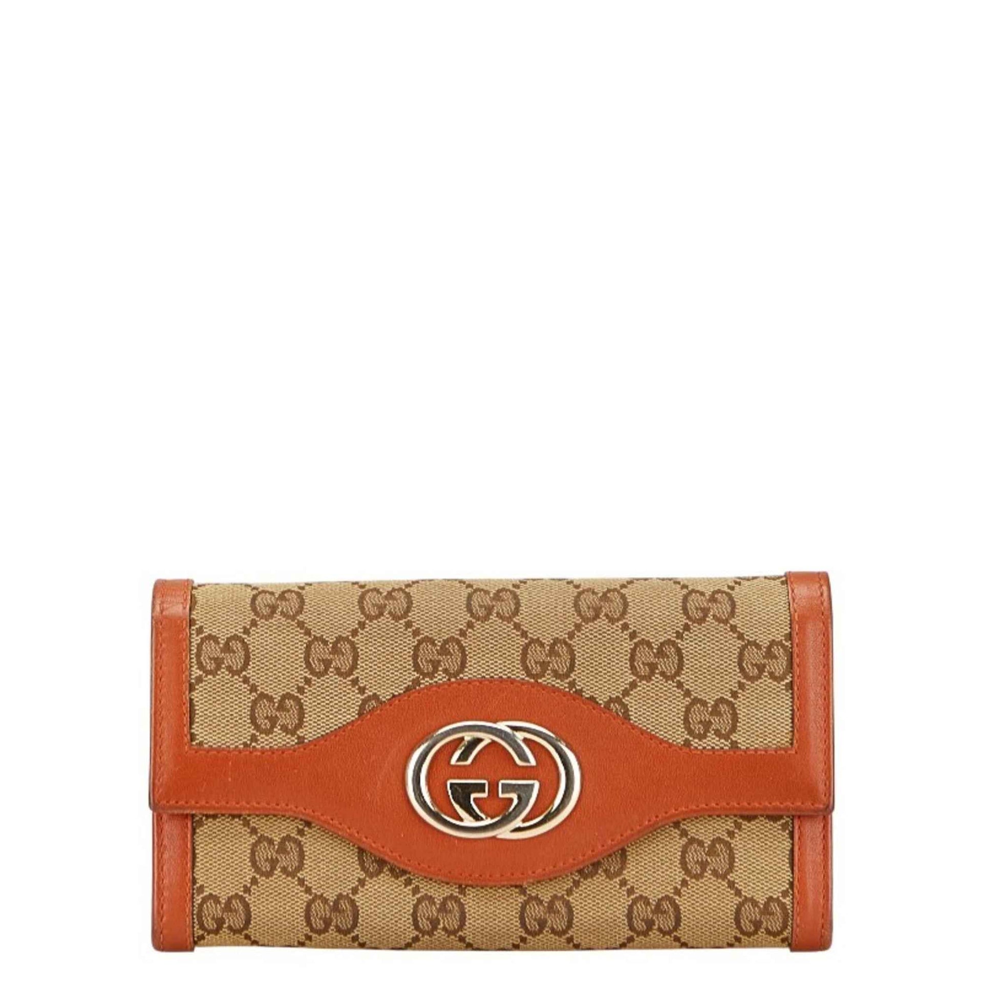 Gucci GG Canvas Interlocking G Long Wallet 282434 Beige Brown Leather Women\'s GUCCI