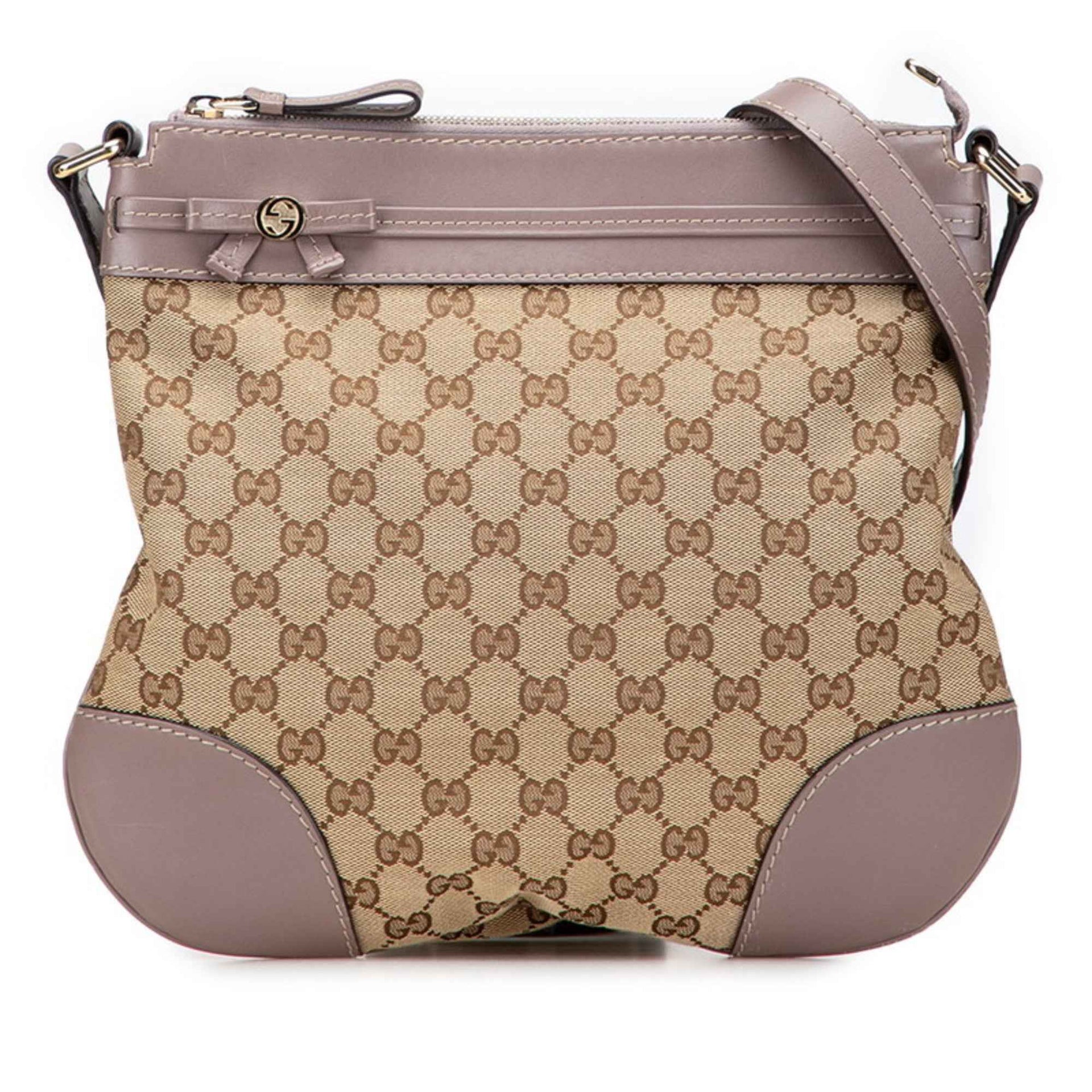 Gucci GG Canvas Mayfair Crossbody Shoulder Bag 257065 in Beige, Pink, and Purple Leather for Women.