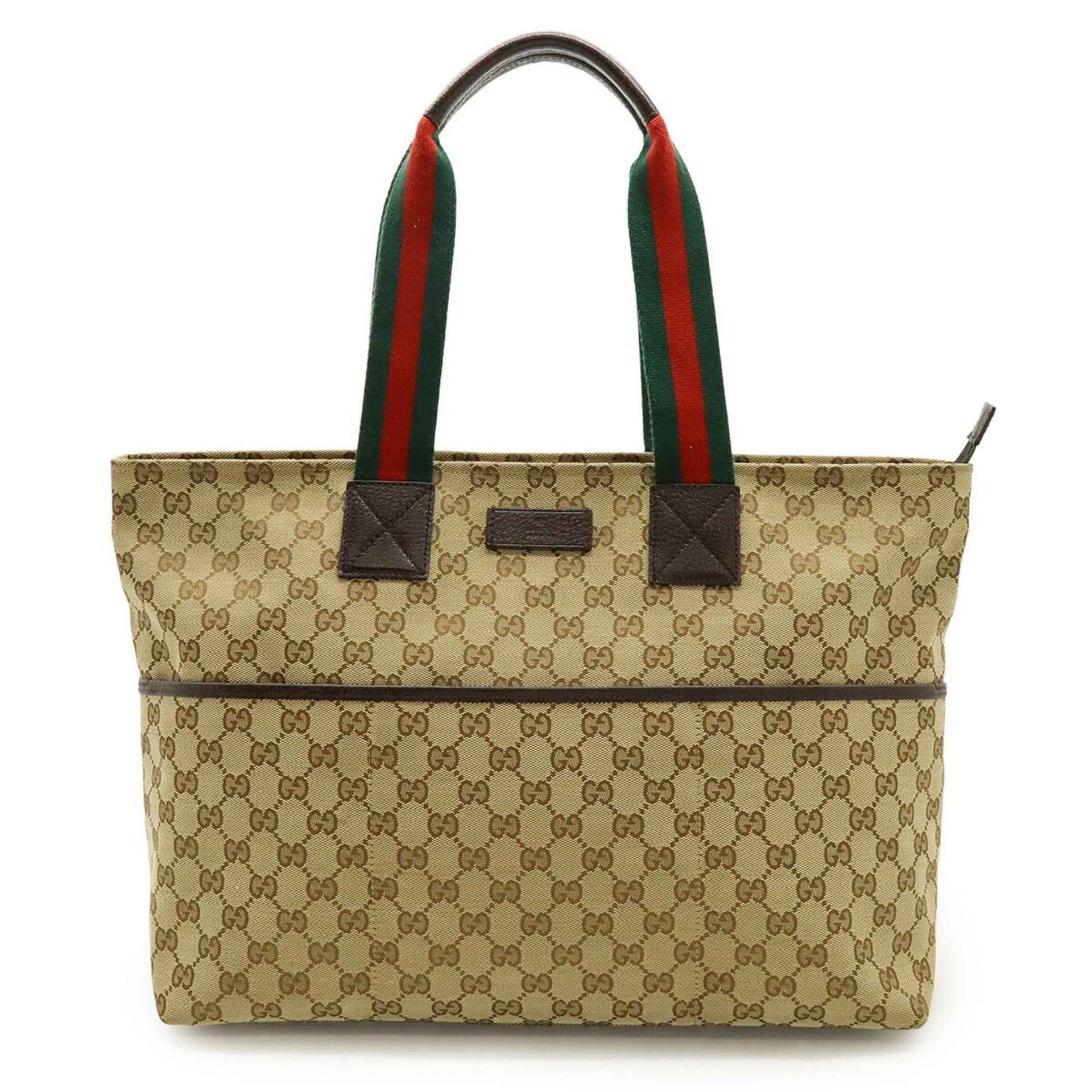 GUCCI GG Canvas Tote Bag, Large Tote, Shoulder Mother\'s Leather, Khaki Beige, Ivory, White, 155524