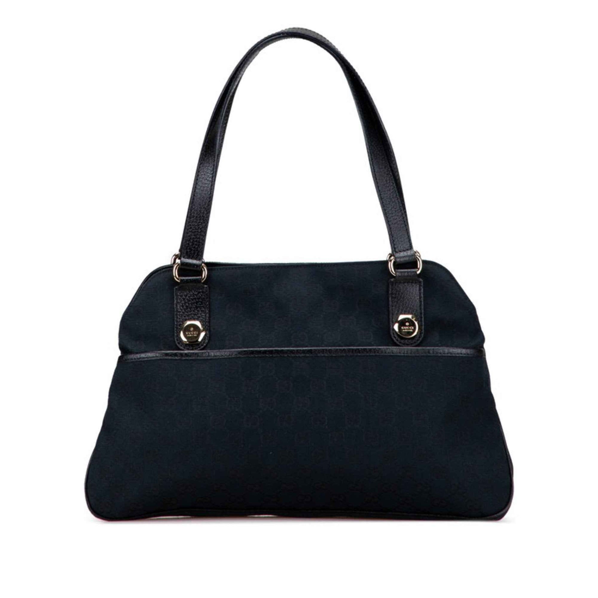 Gucci GG Canvas Tote Bag Shoulder 163288 Black Leather Women\'s GUCCI
