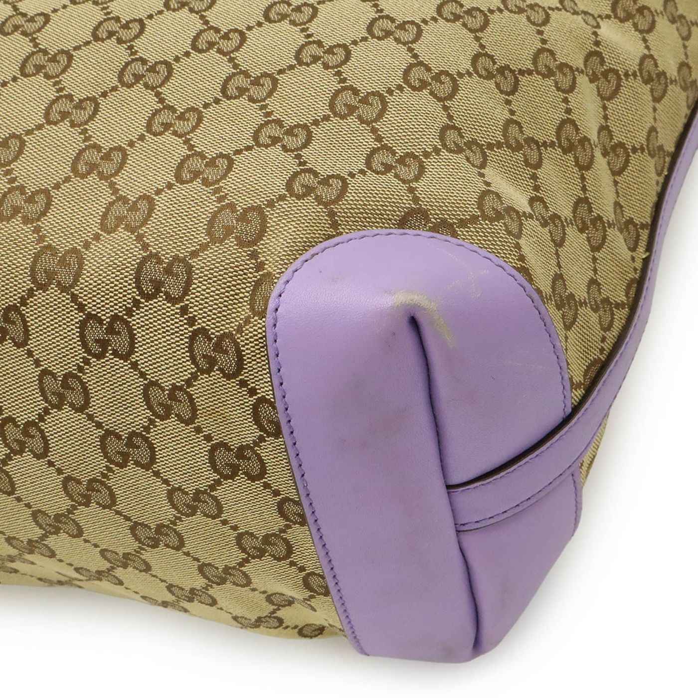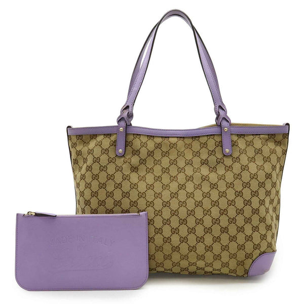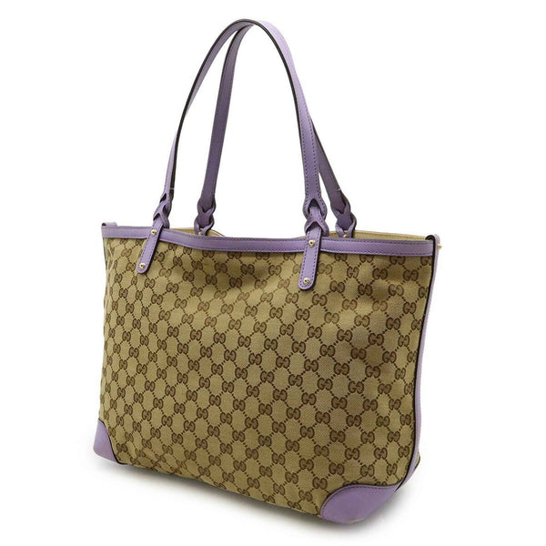 GUCCI GG Canvas Tote Bag, Shoulder Leather, Khaki Beige, Purple, 247209