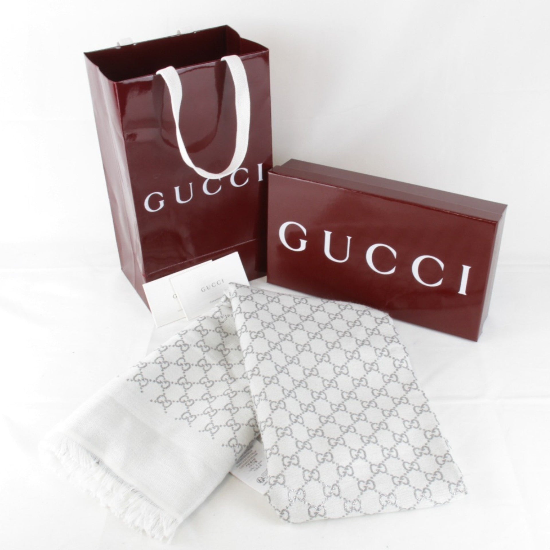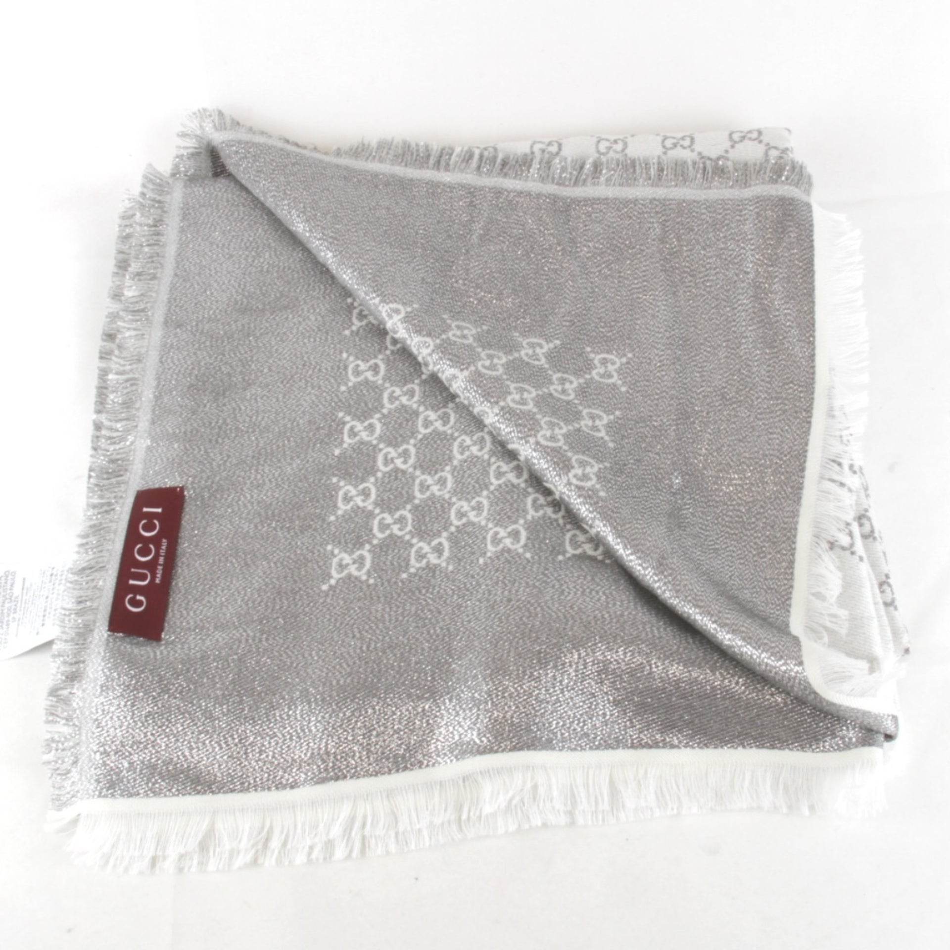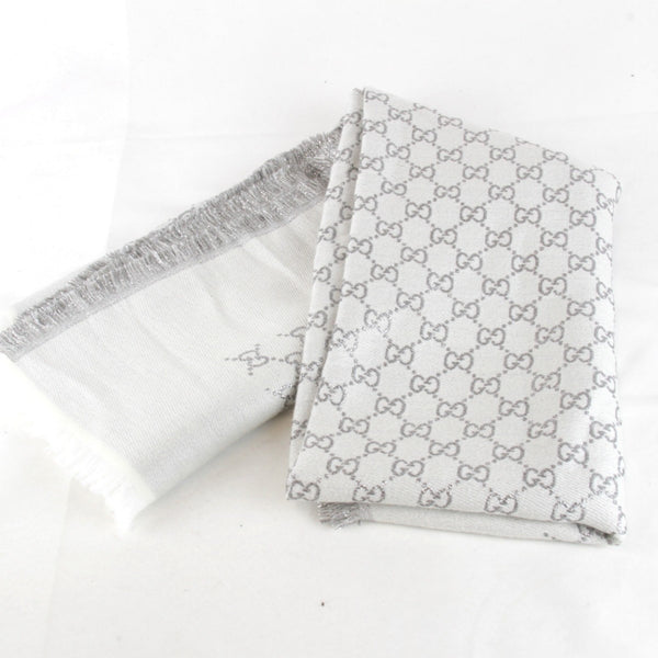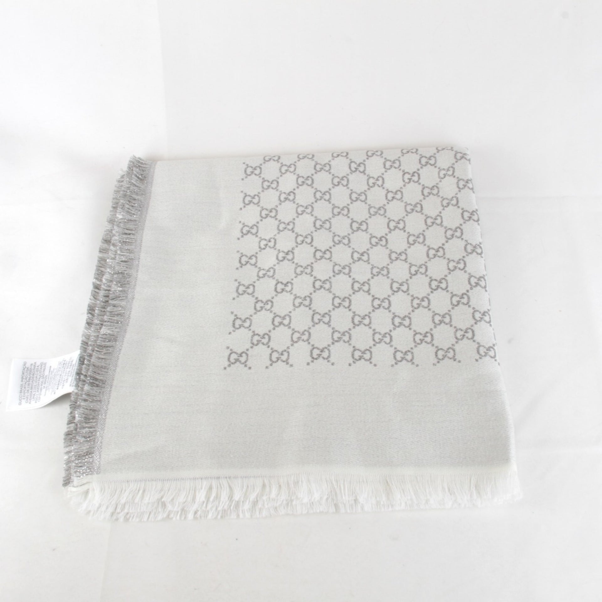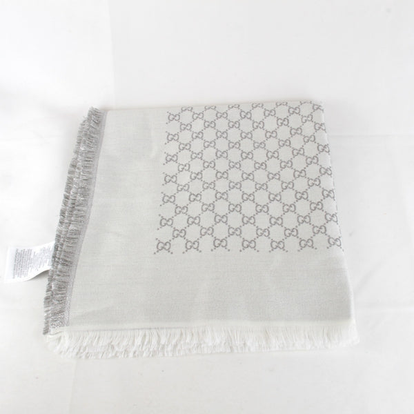 GUCCI GG Jacquard Wool Silk Lame 809226 3GC46 Shawl White Silver Wool/Silk