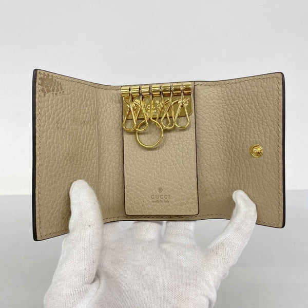 Gucci GG Marmont Key Case 456118 Leather Beige Women\'s