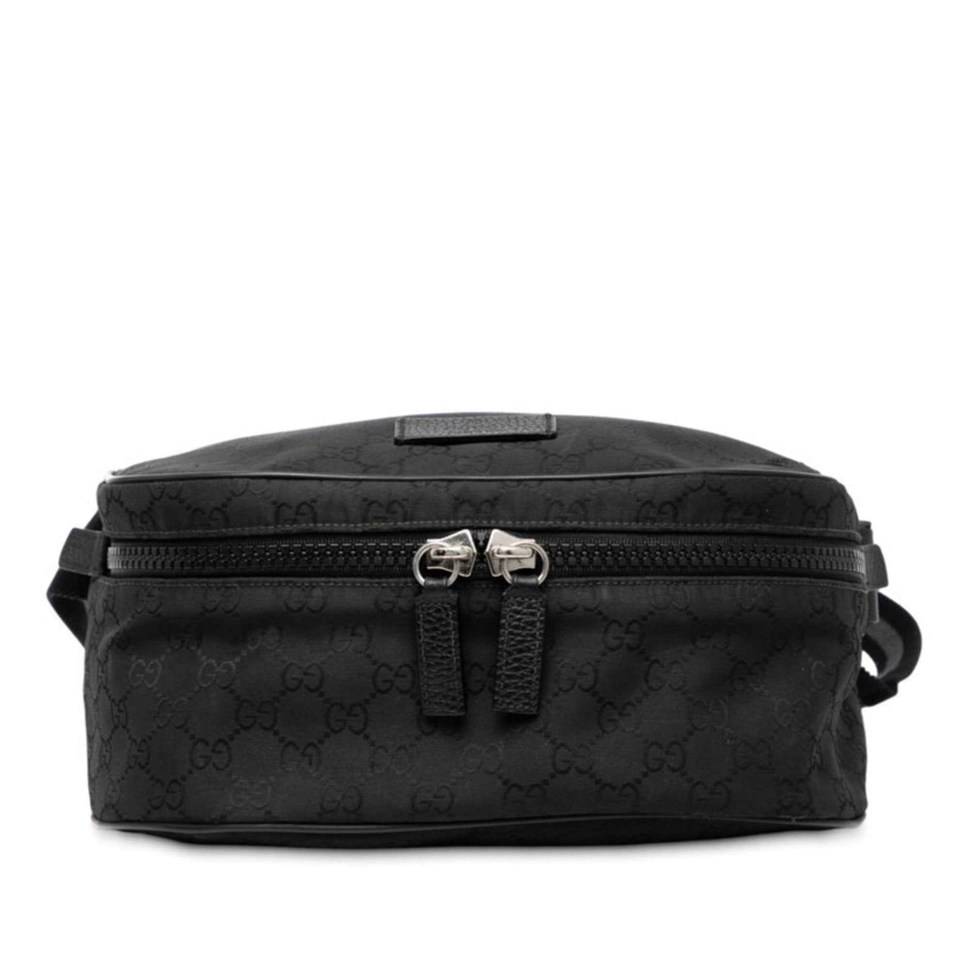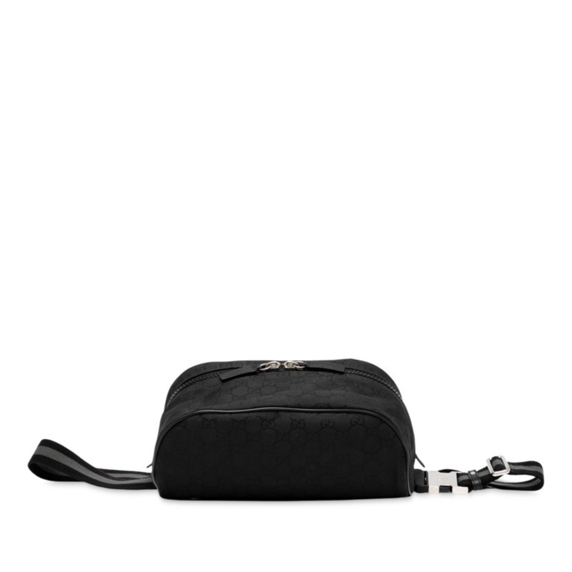 Gucci GG Nylon Belt Bag/Waist Bag 509643 Black Leather Men\'s GUCCI