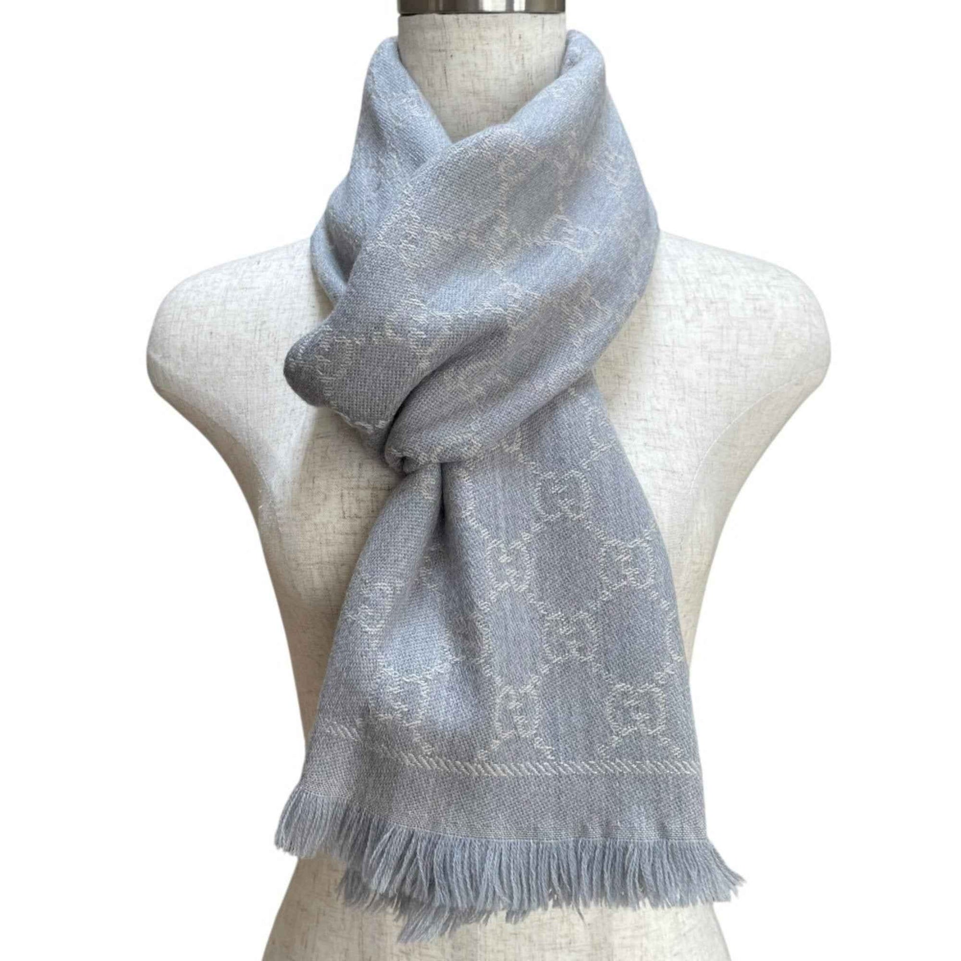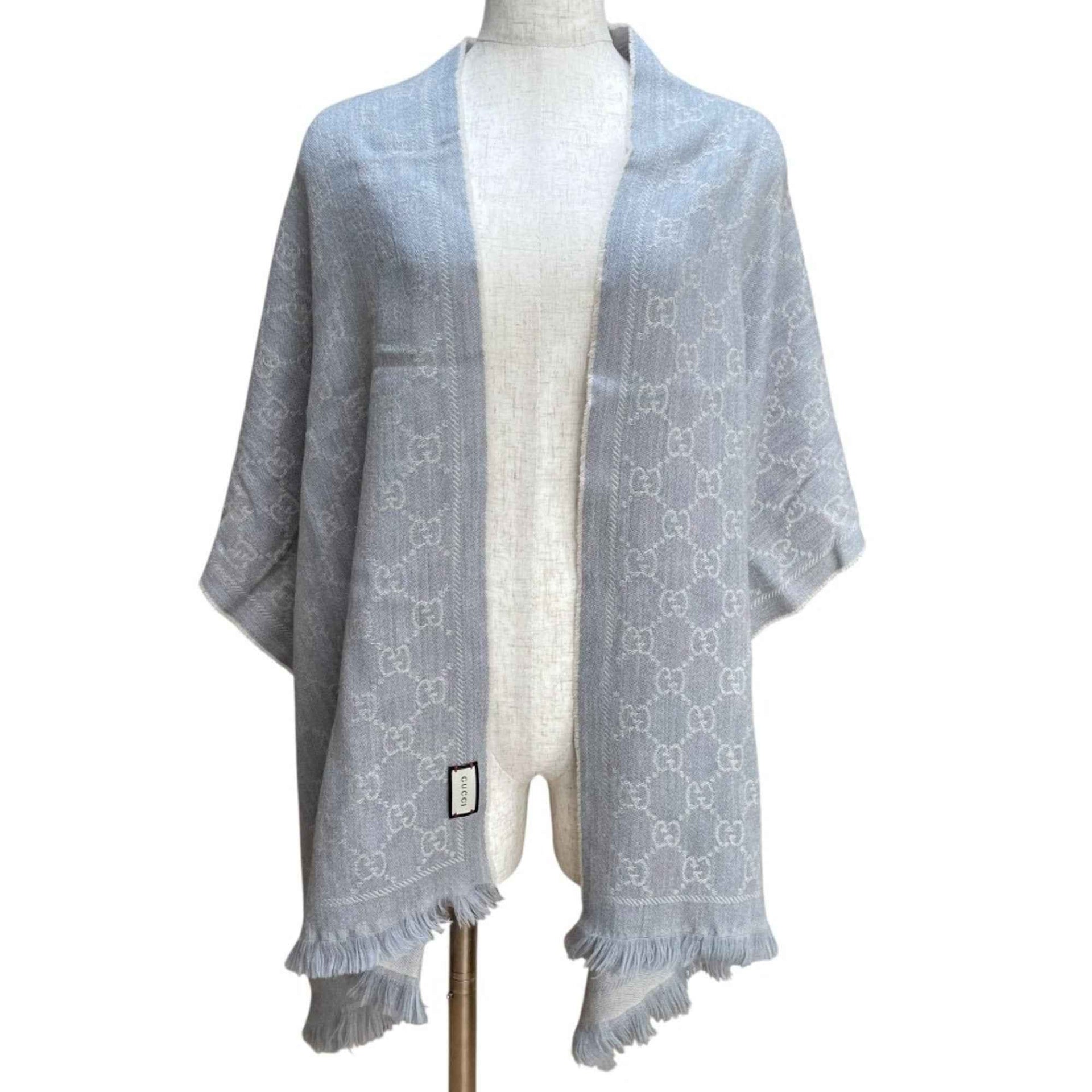 GUCCI GG pattern knit scarf/stole, gray, women\'s