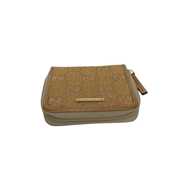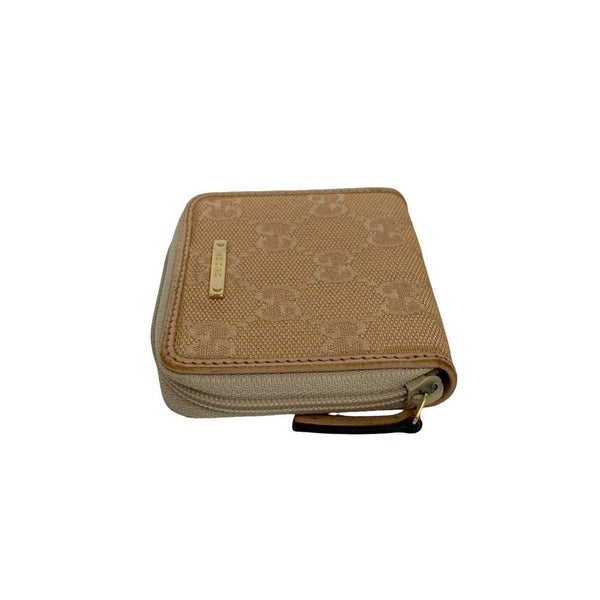 GUCCI GG pattern logo metal hardware canvas and leather round zip coin case, pink beige, 27090
