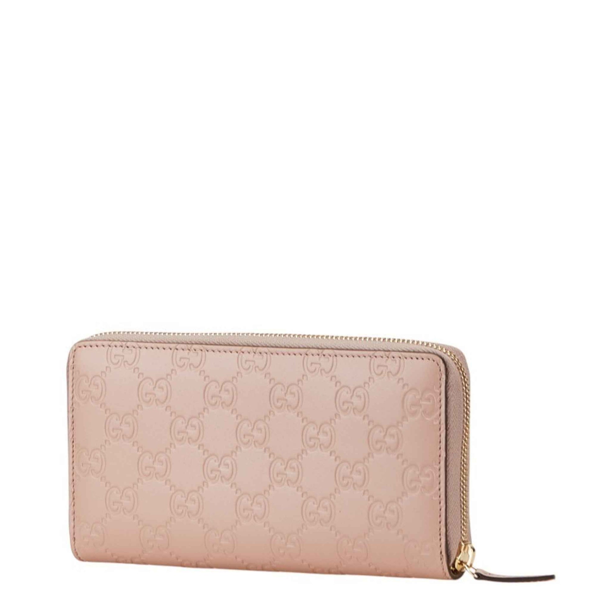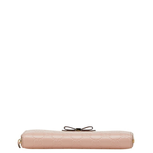 Gucci Guccissima Ribbon Motif Long Wallet with Round Zipper, 388680, Pink Leather, Women\'s, GUCCI