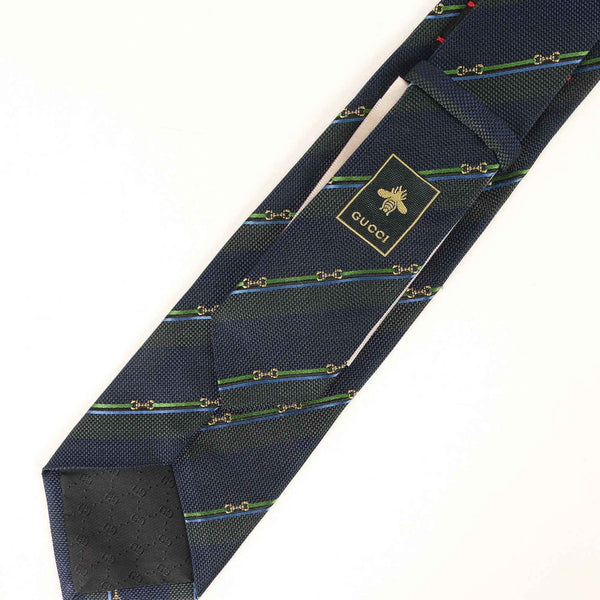 GUCCI Horsebit Regimental Silk Tie in Navy Blue for Men, K4615
