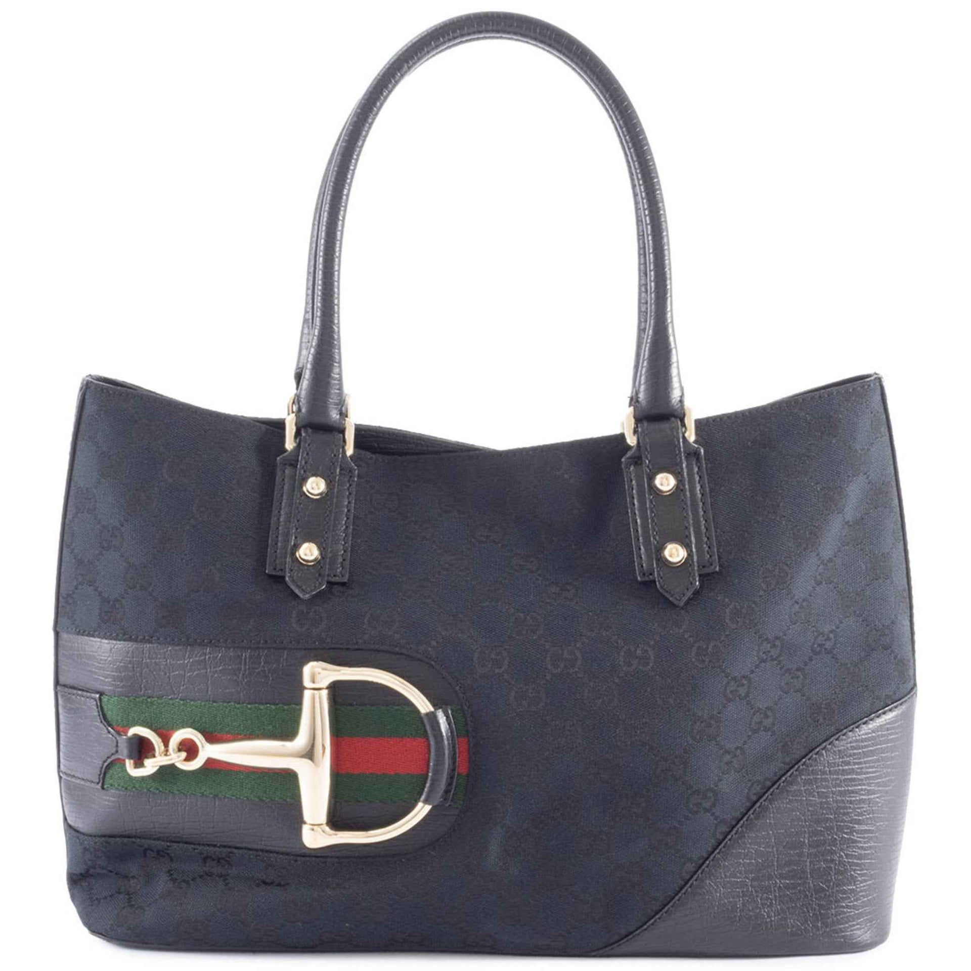 Gucci Horsebit Tote Bag in Black GG Canvas with Sherry Line (137385)