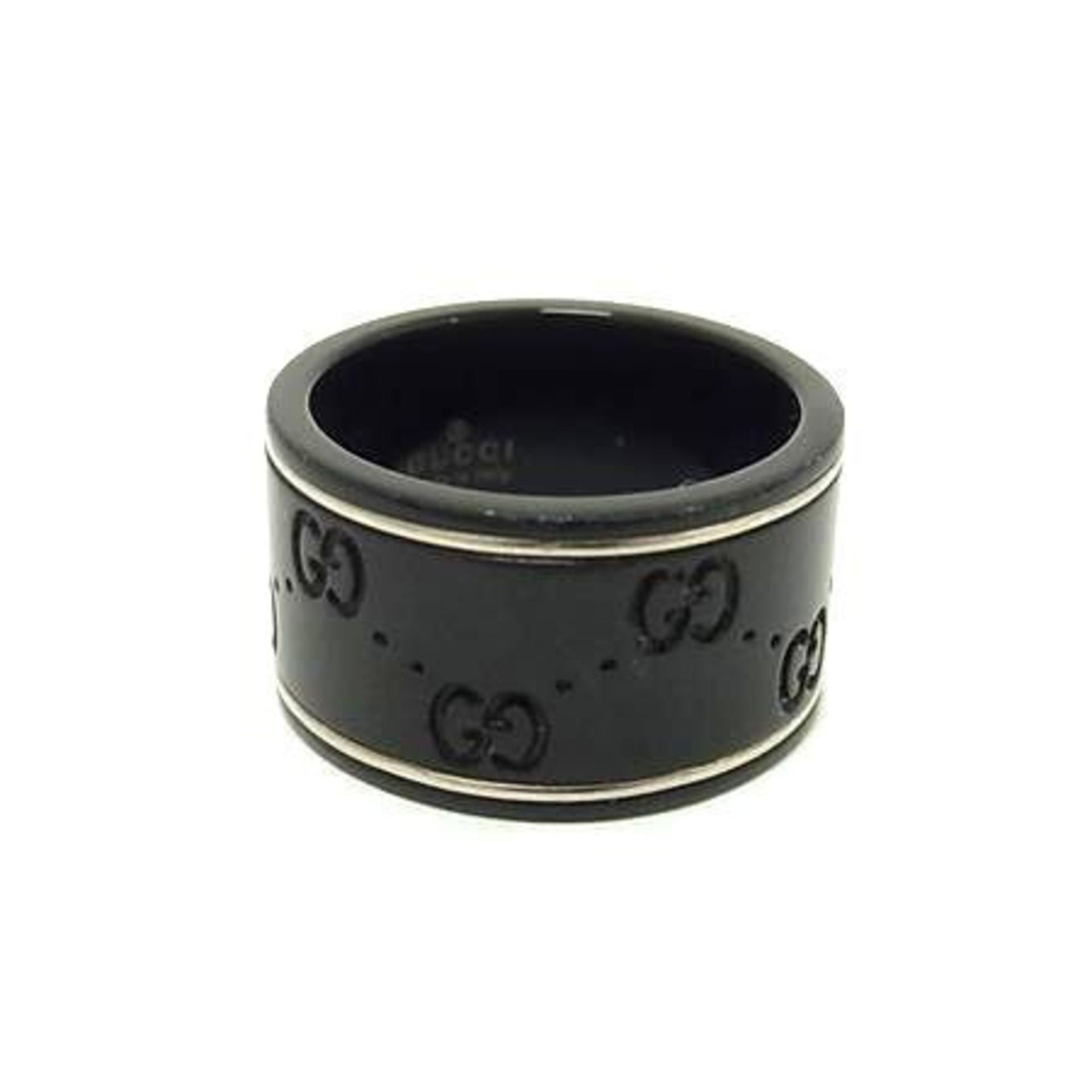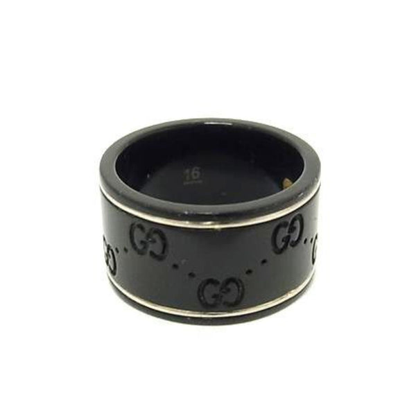 GUCCI Icon Ring Wide Black Synthetic Corundum 18K White Gold for Men and Women