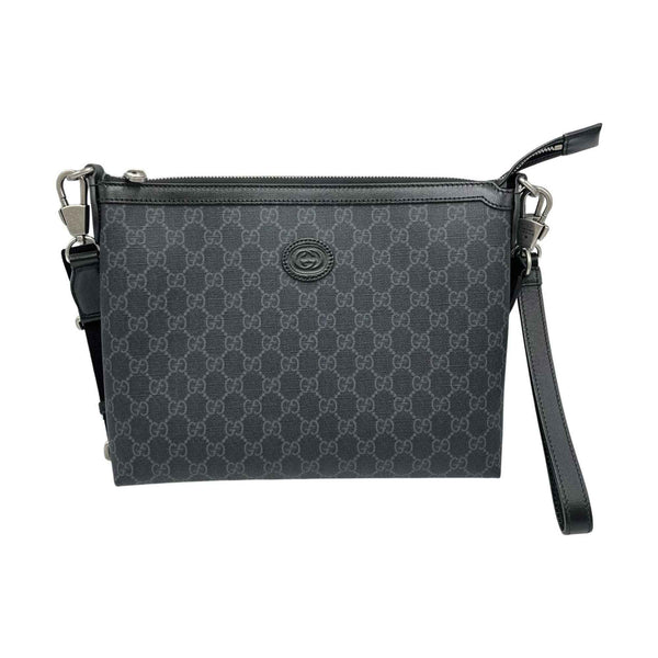 Gucci Interlocking G Messenger Bag in GG Supreme Canvas, Black, Men\'s