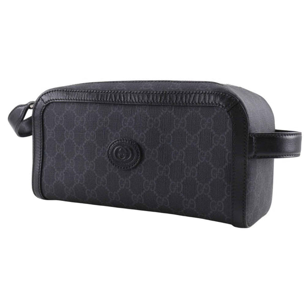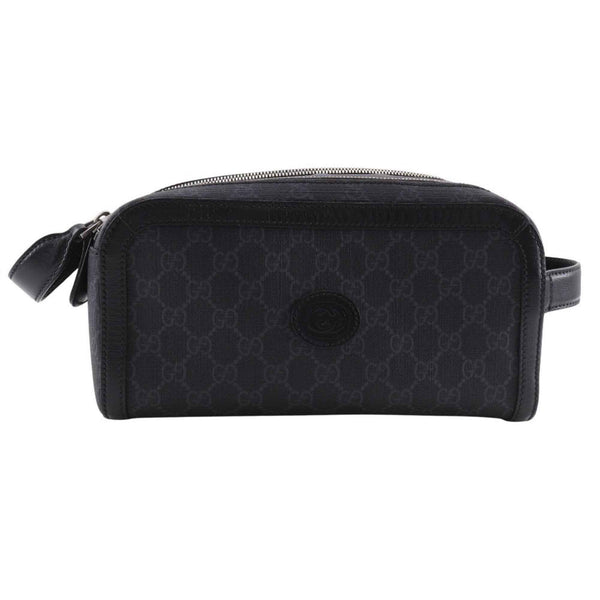 Gucci Interlocking G Second Bag 730116 in Black GG Supreme Canvas with Double