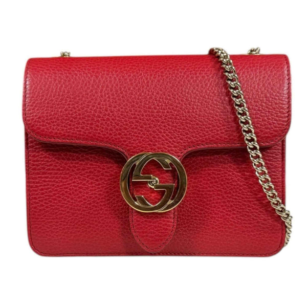 Gucci Interlocking G Shoulder Bag, Leather, 510304, Red, Women\'s, GUCCI Chain