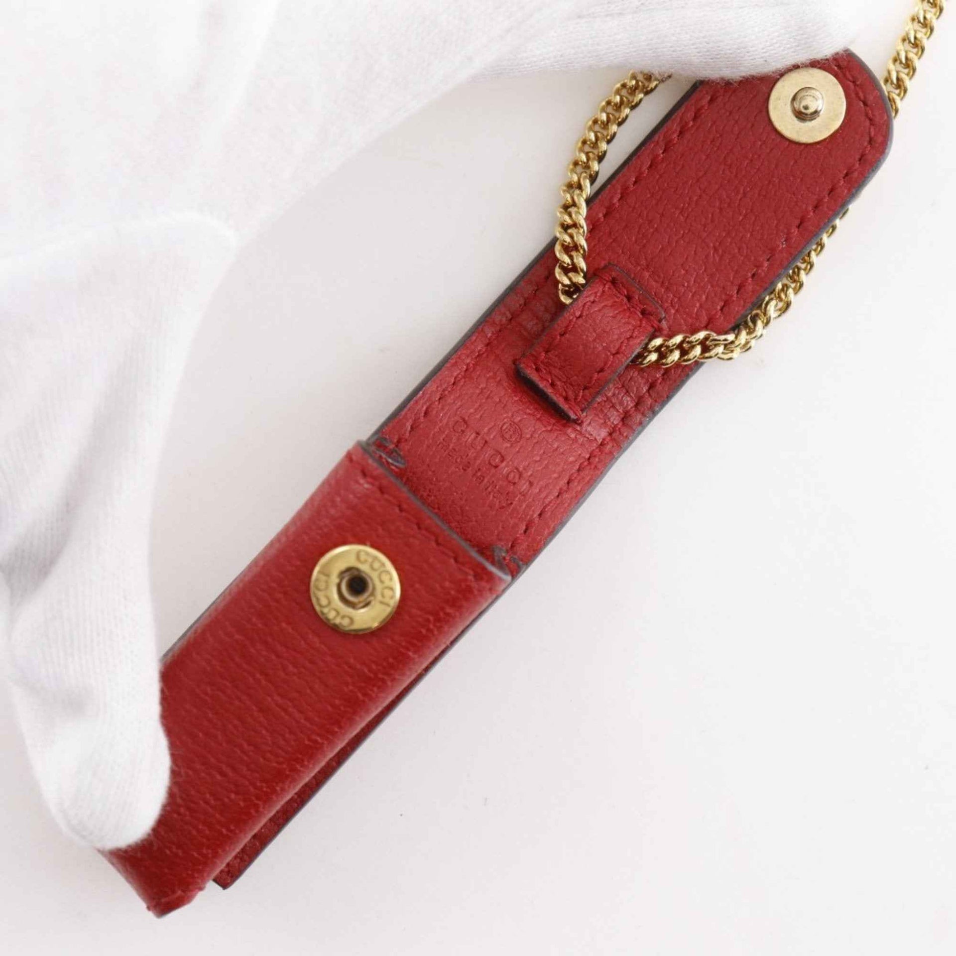 Gucci Lipstick Case with Double G Pendant 615998, Red Calfskin, Women\'s