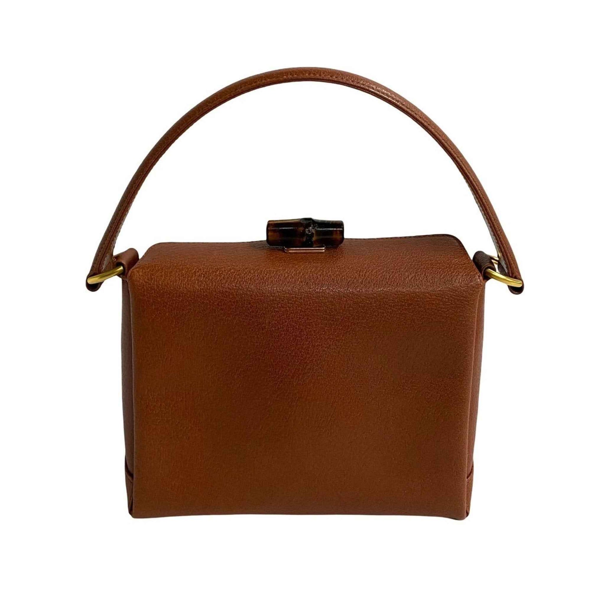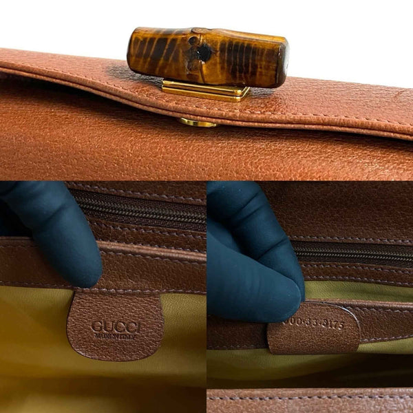 GUCCI Old Gucci Bamboo Turnlock Leather Handbag Tote Bag Brown 42743