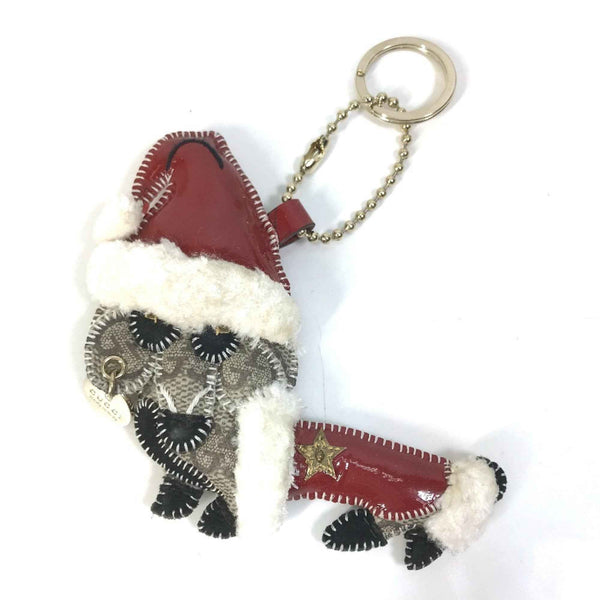 GUCCI Santa Claus Christmas Key Ring with Chihuahua Dog, GG Supreme Canvas, Beige, for Women