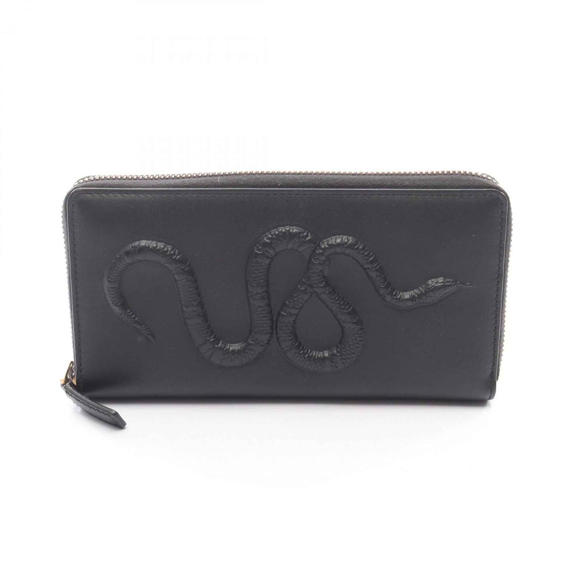 Gucci Snake Leather Round Long Wallet, Men\'s, Black, 451182