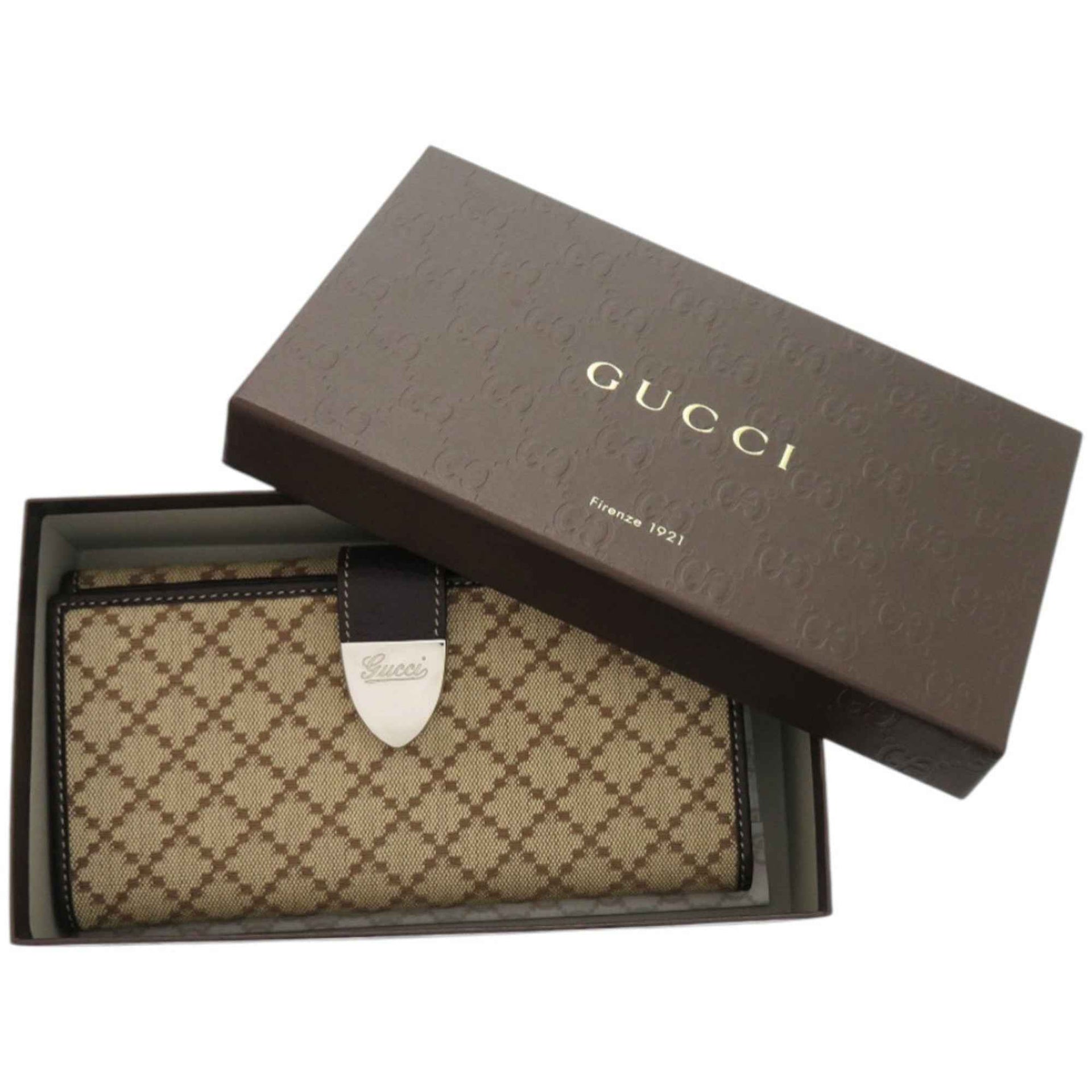 Like new Gucci Diamante 231837 canvas and leather long wallet with silver hardware in brown (0398)