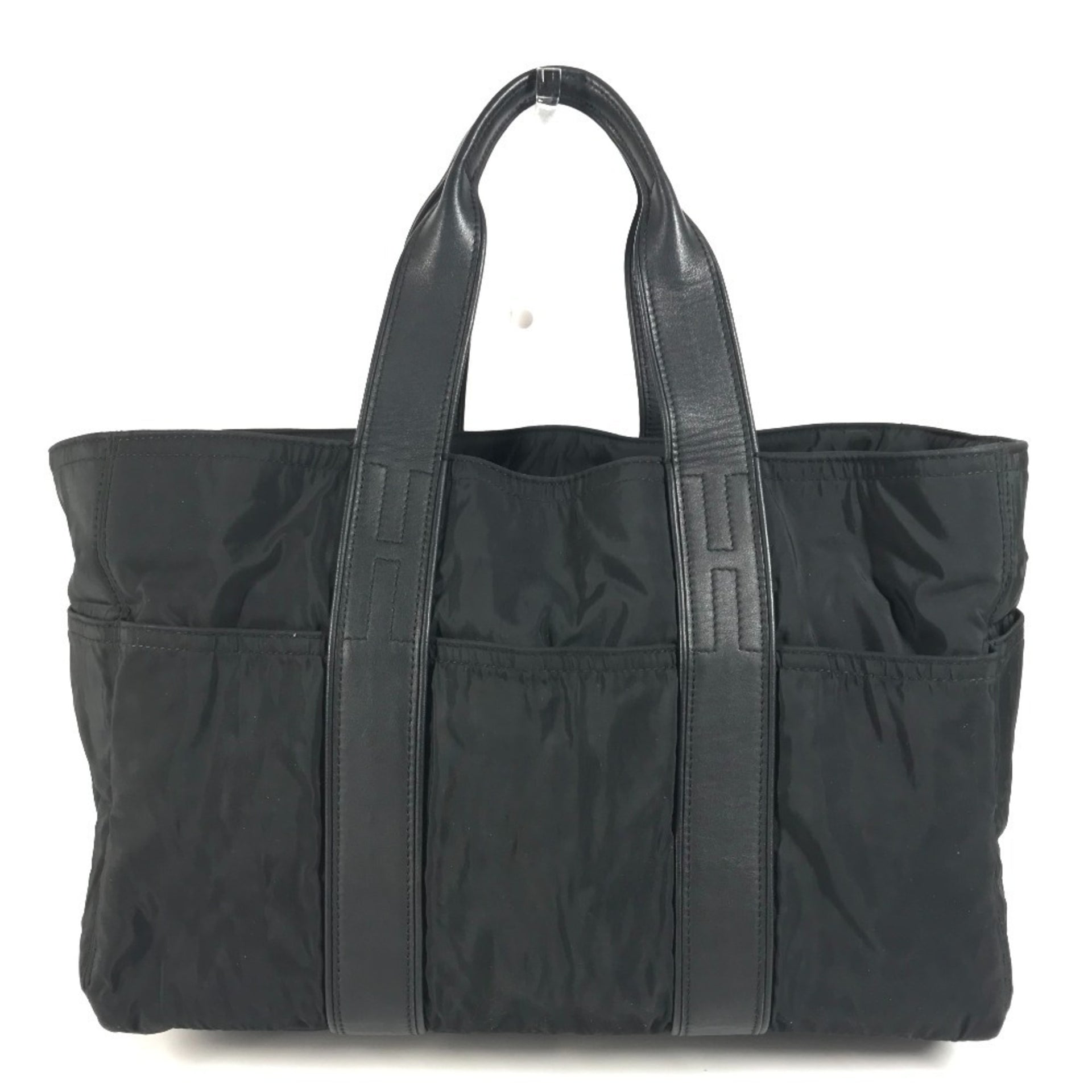 HERMES Acapulco MM Mini Boston Bag, Tote Handbag, Nylon and Leather, Black, Men\'s Women\'s