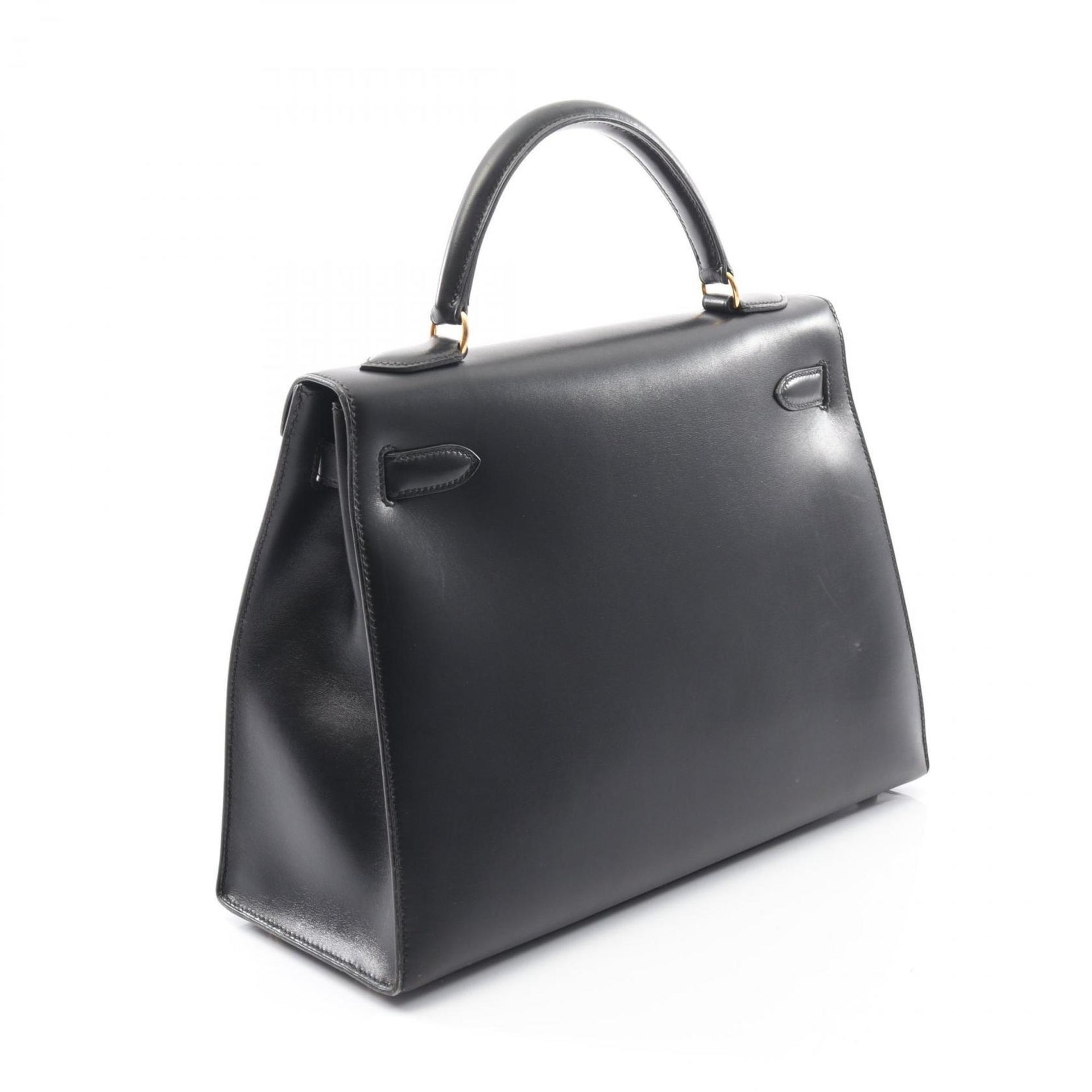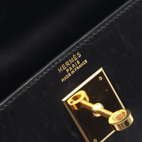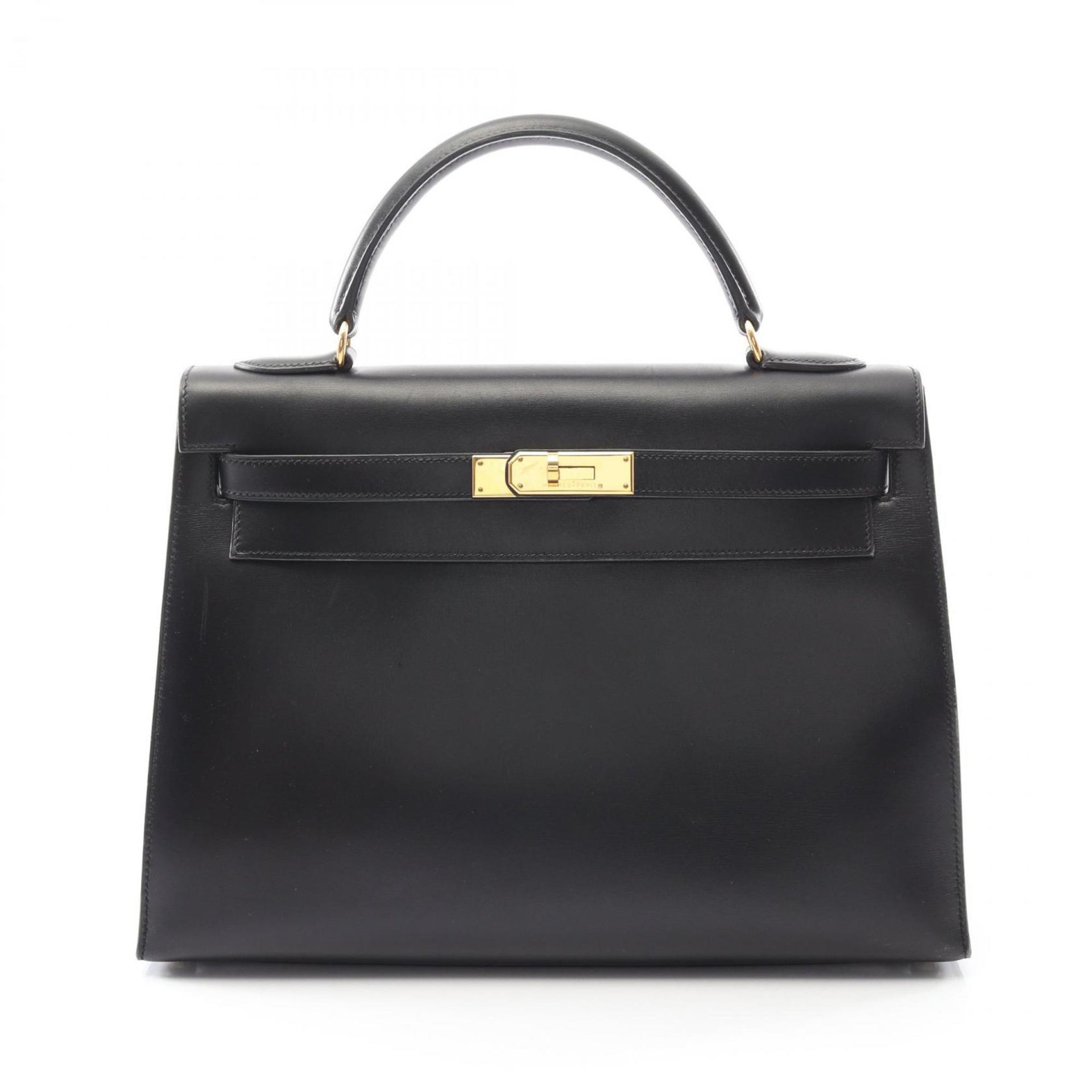 Hermes Hermès Kelly 32 Handbag, Calfskin Box Calf Leather, Black, 001858CC