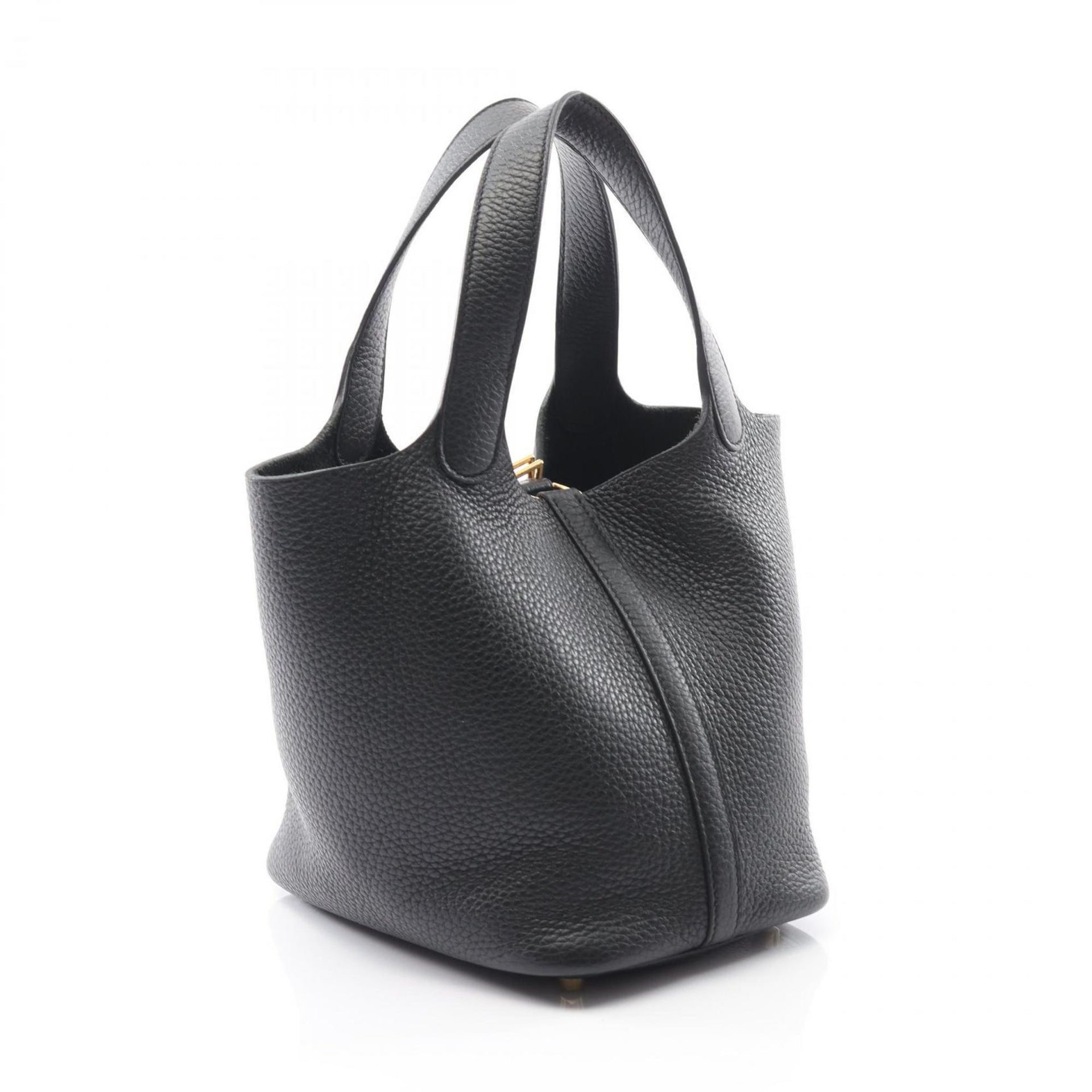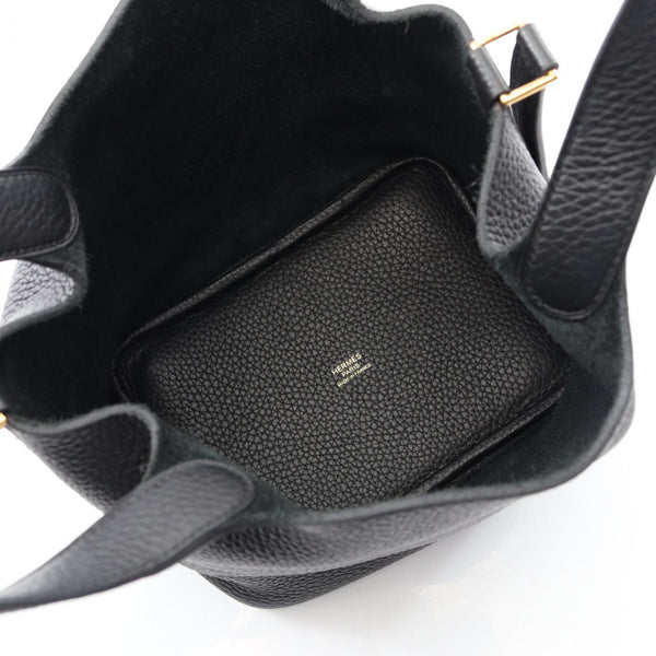Hermes Hermès Picotin Lock PM handbag in Taurillon Clemence leather, black.