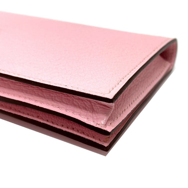 HERMES Bearn Soufflet Long Wallet with H Hardware, Chevre Mysore, Rose Sakura, Pink, for Women