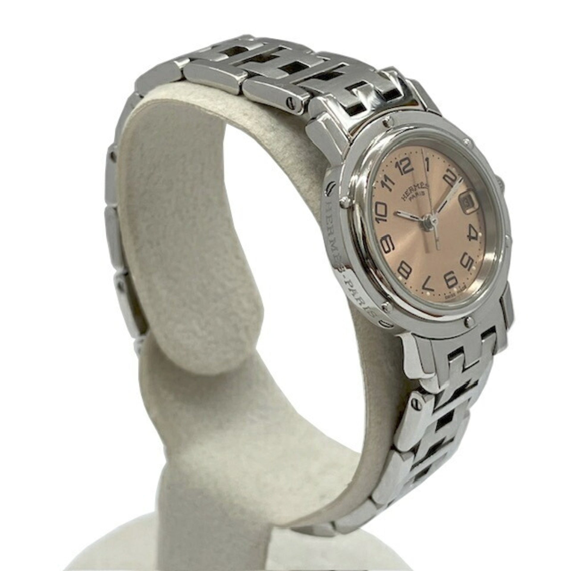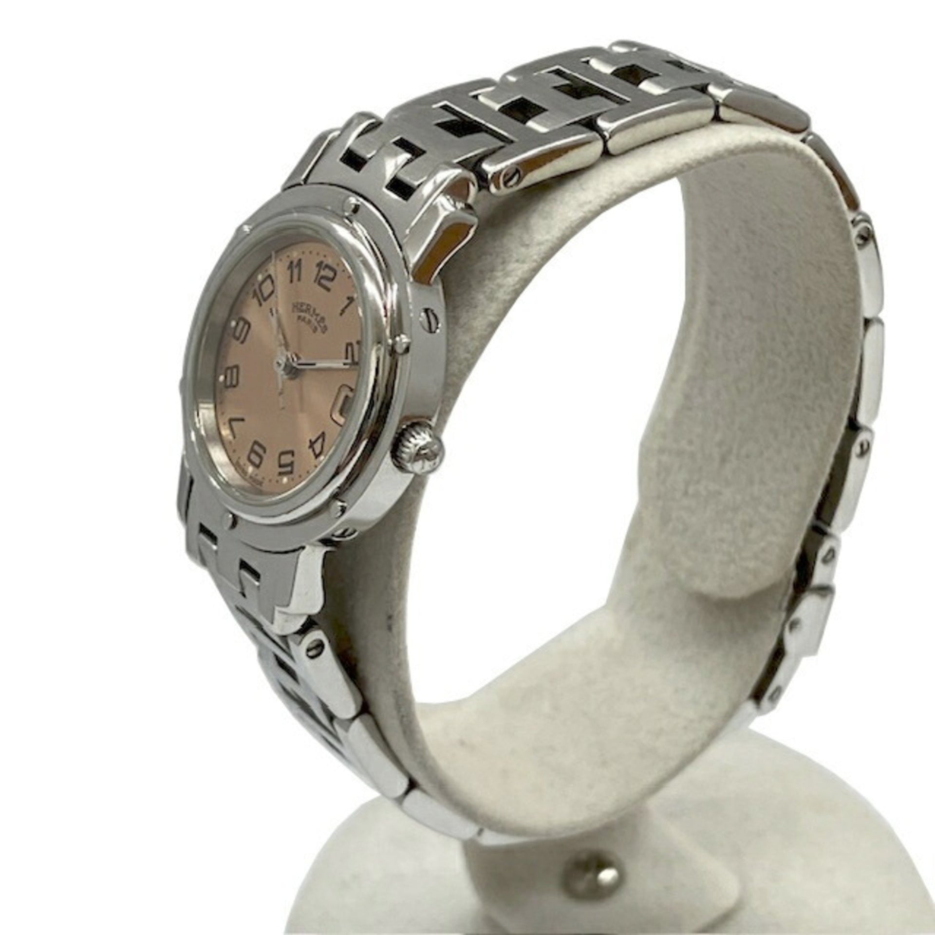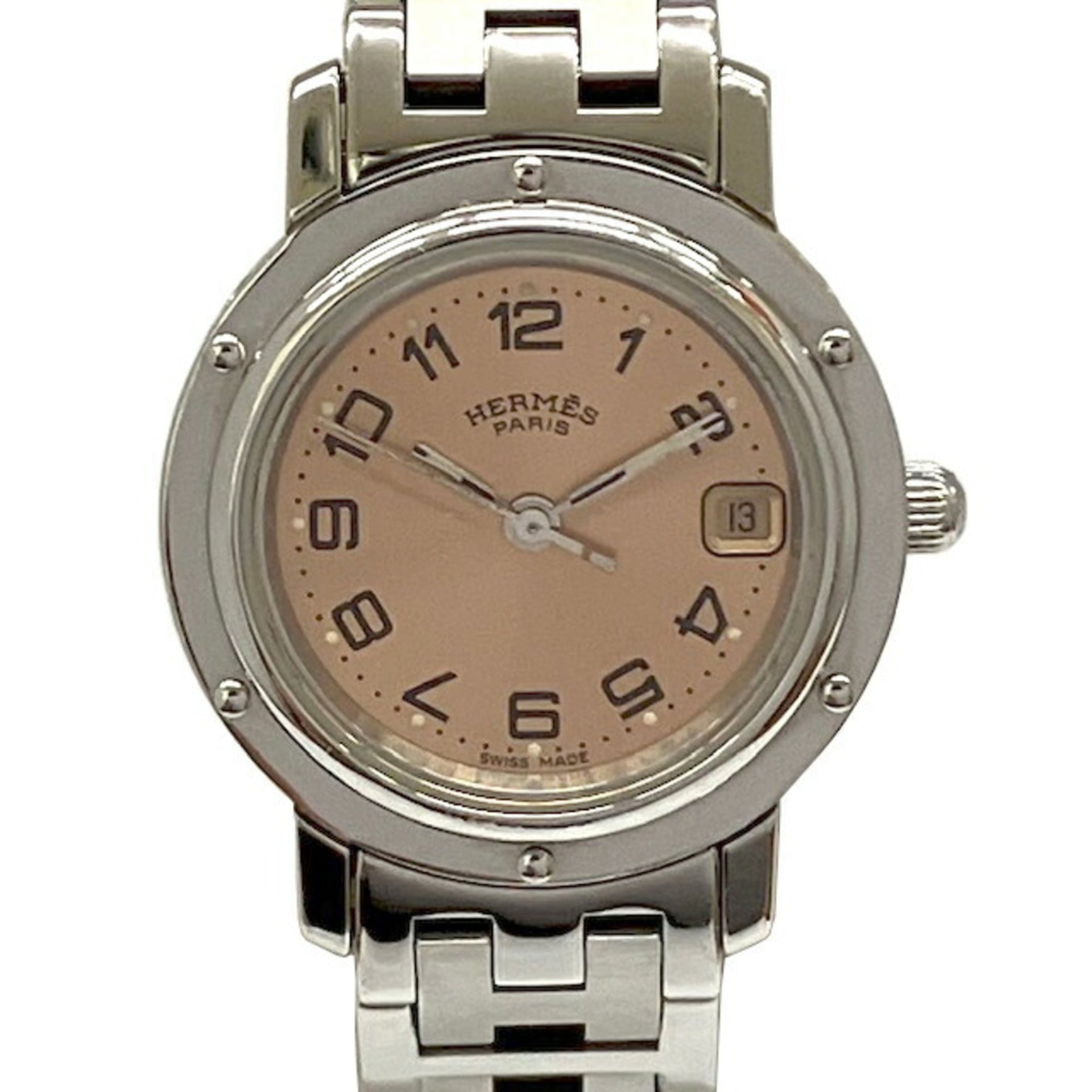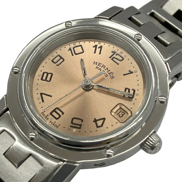 HERMES Clipper CL4.210 SS Quartz Pink Dial Stainless Steel Ladies Watch