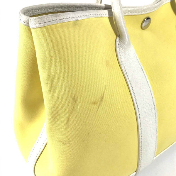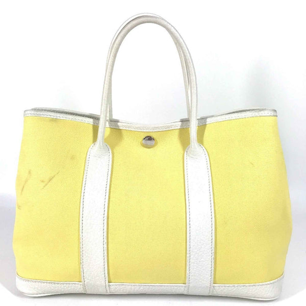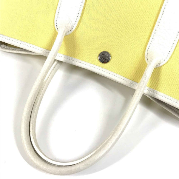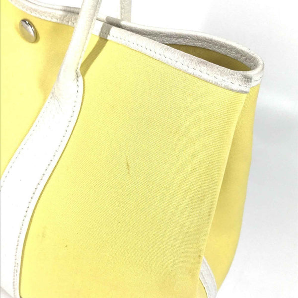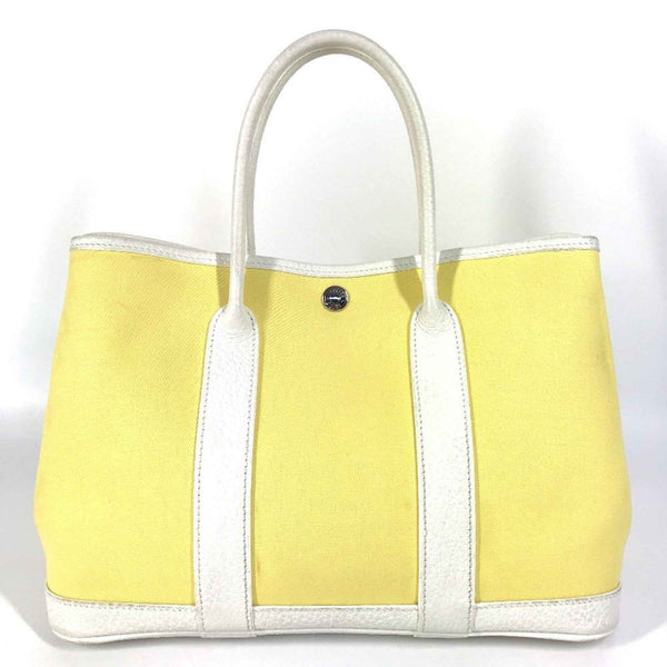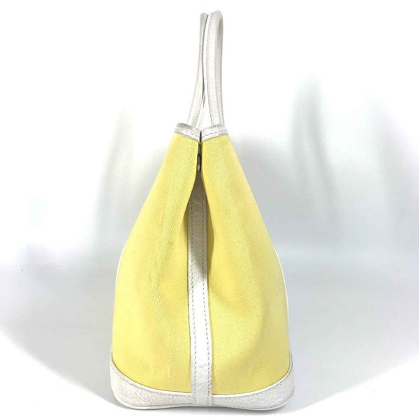HERMES Garden Party TPM Tote Bag, Toile H Leather, Yellow, Women's