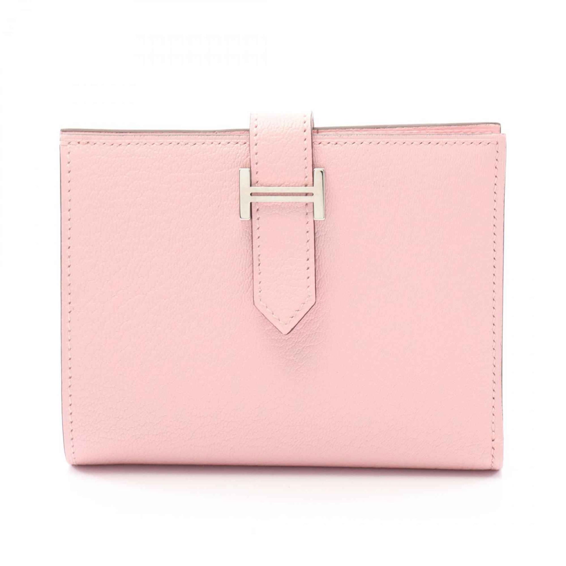 Hermes Hermès Bearn Compact Bifold Wallet, Leather, Chevre, Women\'s, Pink