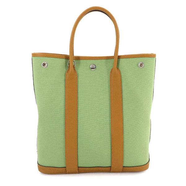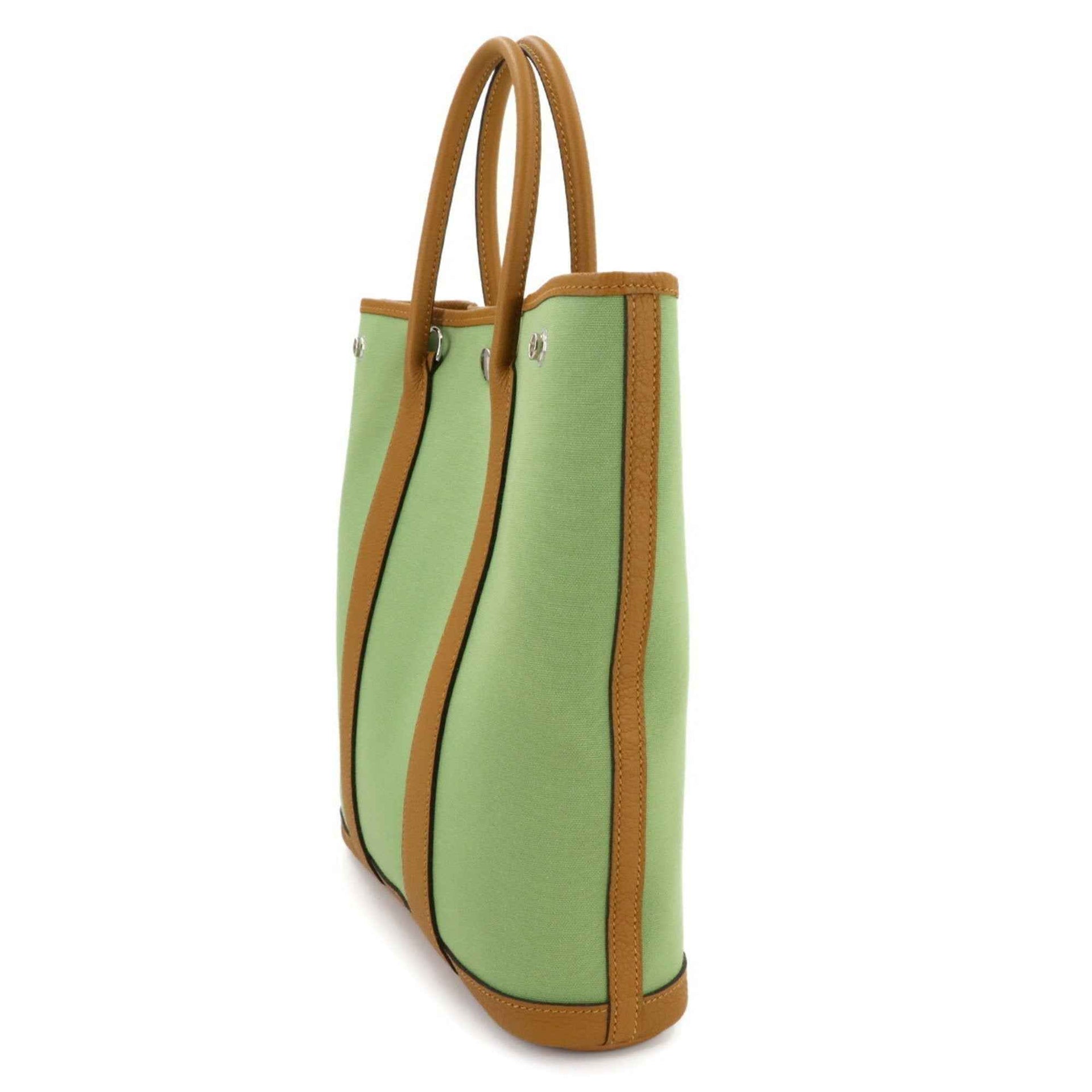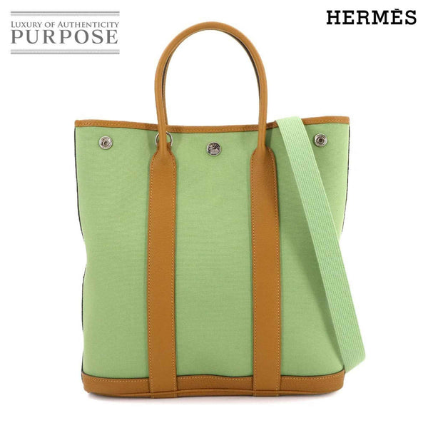 Hermes Hermès Garden File PM 2-way tote/shoulder bag in Toile Officier, Negonda, Vert Cricket, and Ocher with a Y stamp.